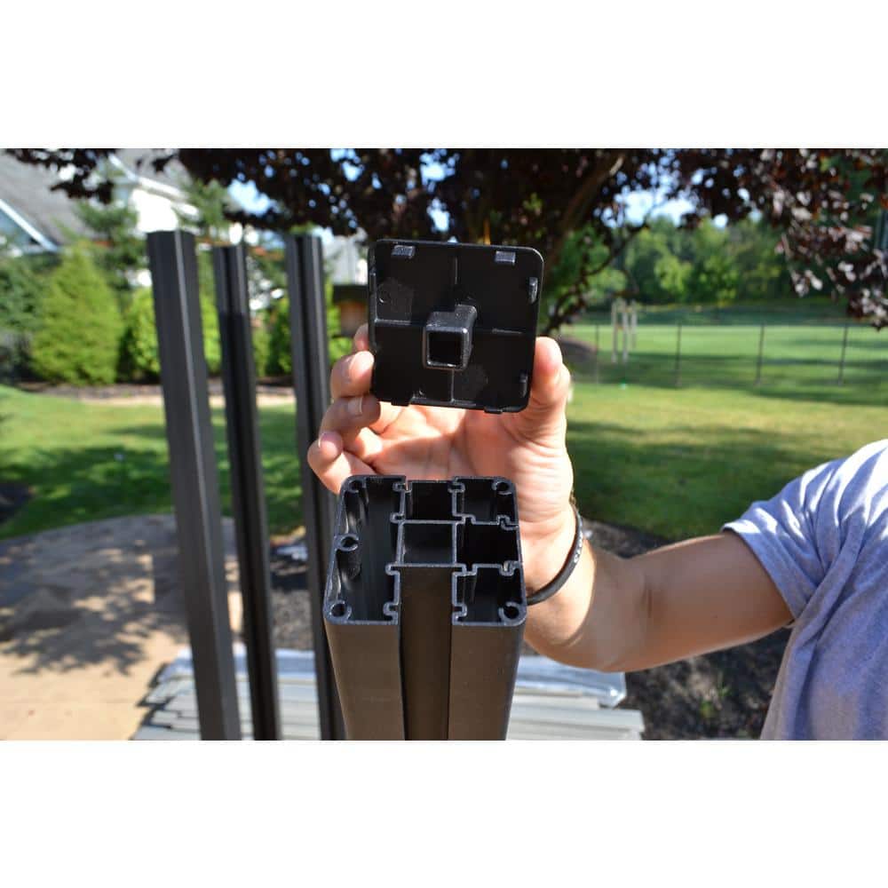 The Veranda Euro Style 8 ft. Ground Install Fence Post Kit offers durable and stylish fencing solutions for any outdoor space. Made of UV-protected black aluminum, this post is lightweight yet strong, perfect for creating full privacy fences around pools or backyards with minimal maintenance.