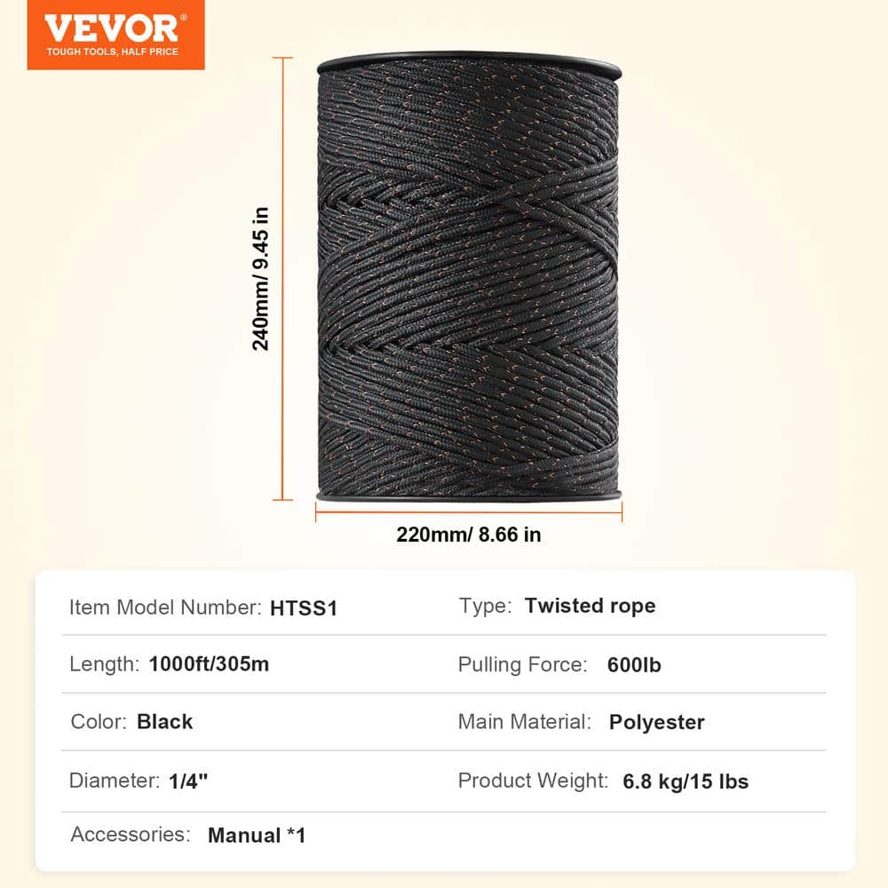 VEVOR Electric Fence Wire, 1000 ft. 305 M Portable Polypier, 1/4 in. Dia 2 Copper Strands for Reliable Conductivity