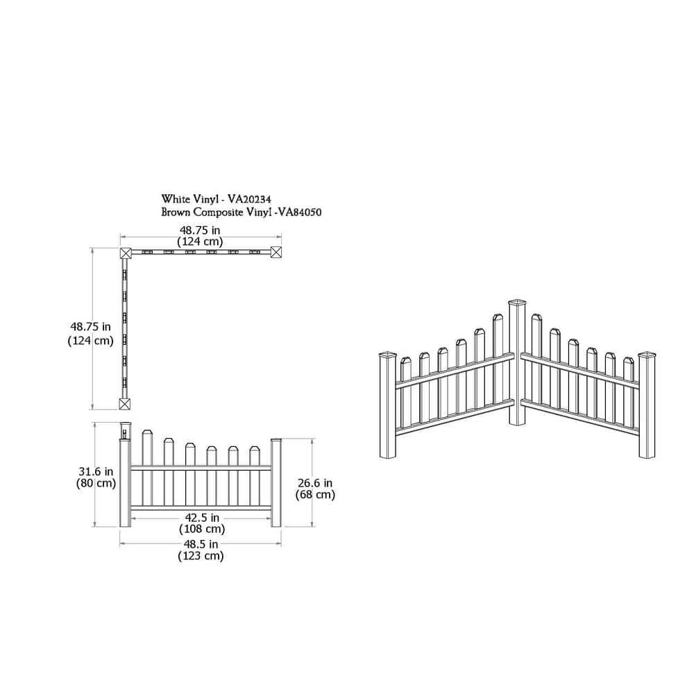 VITA Country Corner Embossed Vinyl Picket Fence, Brown - 49"L x 49"W x 44"H