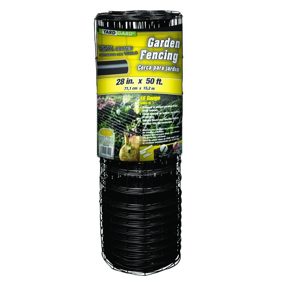 The YARDGARD 2.3 ft. x 50 ft. Black PVC Garden Fence is perfect for protecting your garden from rabbits and other pests. Made from galvanized steel with a durable PVC coating, this fence offers an ideal blend of strength and aesthetic appeal. Its unique wire spacing design provides optimal protection where it's most needed.