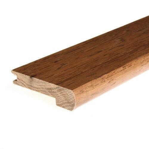 Flexco Falls River Hickory stair nosing is designed to take the brunt of foot traffic while maintaining the beauty of the stairs The Falls River finish and top coat allow the woods natural beauty to shine through while offering a rich color to match wood flooring Prefinished with an environmentally friendly water-based low VOC polyurethane top coat Made from the finest solid hardwood available for lasting durability See flooring manufacturer guidelines for required underlayment Easily cut for custom finish Each stair nose is 2.75-in W x 0.5-in H x 78-in L Smooth finish for flawless transition to flooring and can be installed in both residential and commercial buildings "Pass-it-on" warranty could not be more simple, we will match the warranty provided by the hardwood flooring manufacturer on any project where our hardwood transitions are used