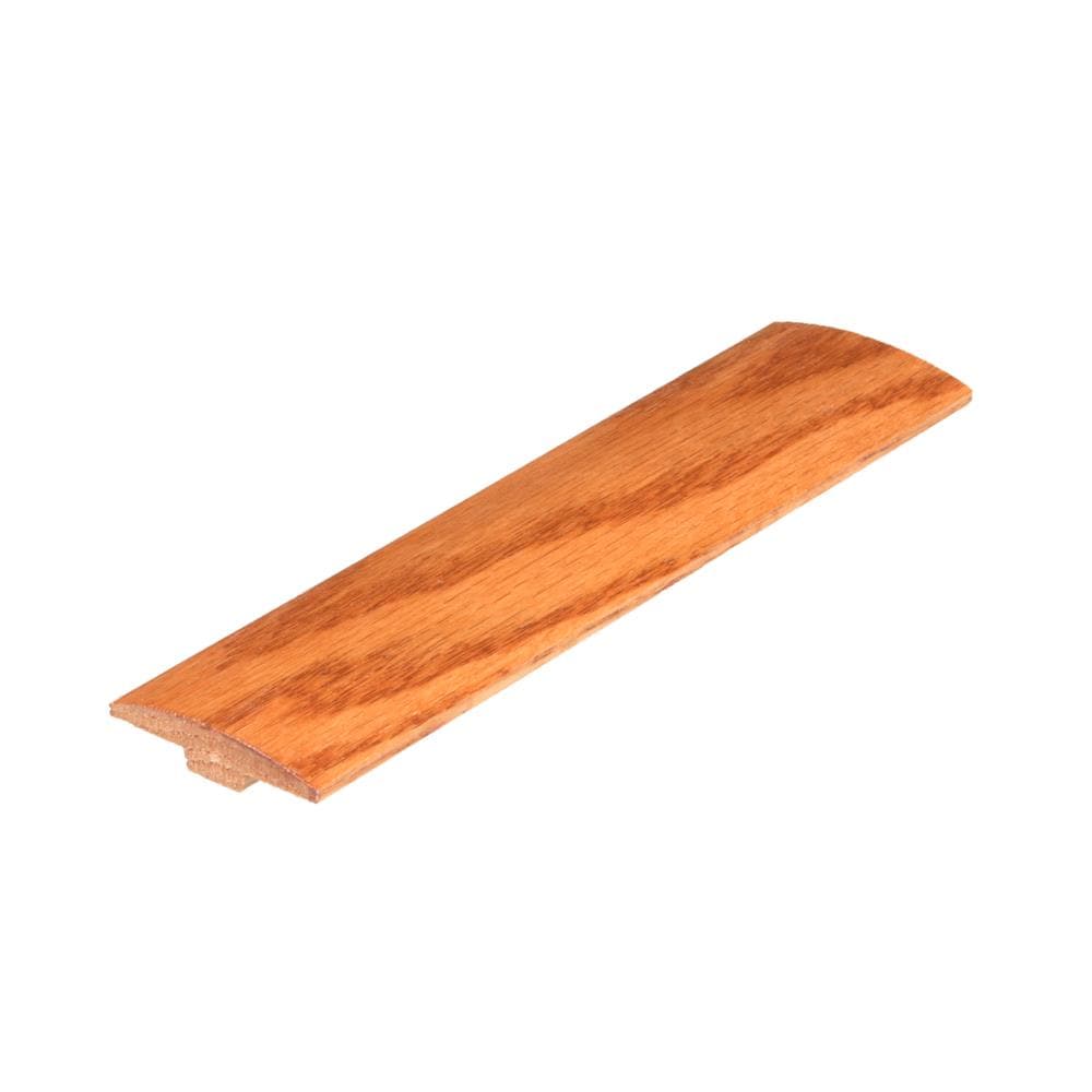 A prefinished solid red oak T-moulding that creates a smooth transition between floors of equal height. Measuring 0.46 in thick by 2 in wide and 78 in long, it features a durable, low-VOC polyurethane top coat in a warm Butterscotch finish.
