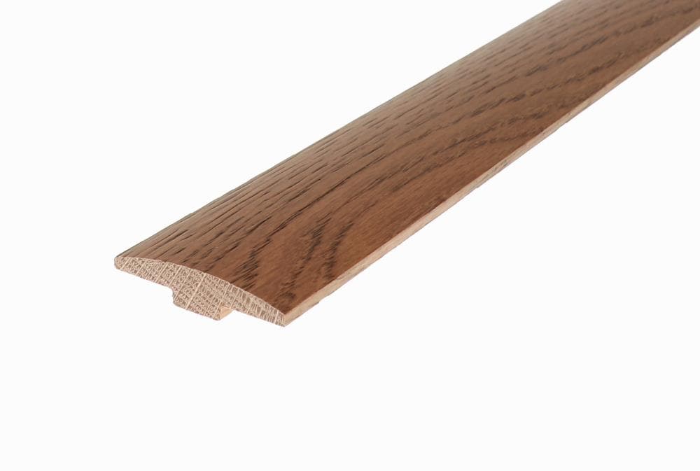 Join same-height floors with this prefinished solid oak T-moulding from Flexco. The French Oak Fawn finish highlights natural grain while a durable, low-VOC polyurethane top coat resists wear for long-lasting transitions.