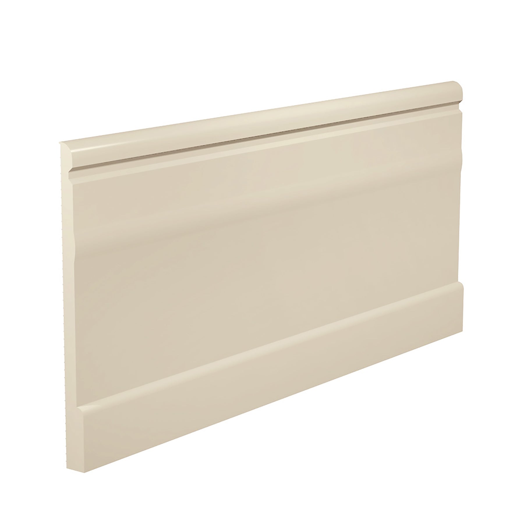 This linen-hued base creates a tailored, architectural edge that elevates any room with quiet sophistication. The sculpted profile lends the look of custom millwork while its resilient vinyl ensures a pristine finish day after day. Pair it with pale oak floors and soft neutral walls for a serene, gallery-like aesthetic. A polished essential that completes the space with luxury and ease.