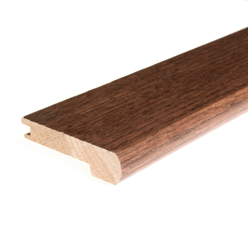 Durable solid oak stair nose with a leathered prefinished surface creates a clean, protective edge on stairs and landings. Designed to handle heavy foot traffic while providing a smooth transition from tread to flooring. Water-based low-VOC polyurethane top coat showcases rich wood tone for residential or commercial installs.