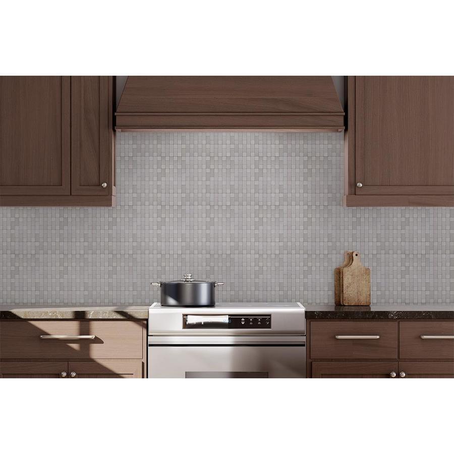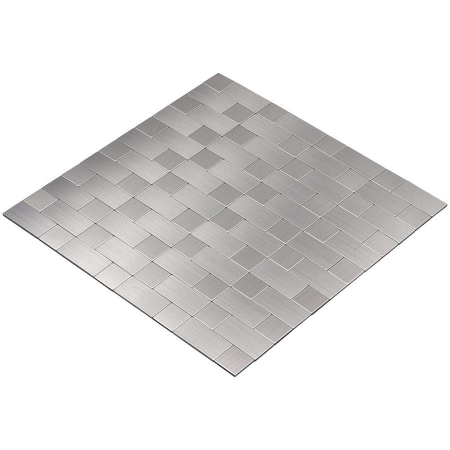 This striking, stainless steel Peel and Stick tile provides a subtle, clean, and truly unique look to any space Each stainless steel Peel and Stick tile contains a red backing and once peeled exposes an adhesive layer that will stick to almost any surface just clean, peel, and stick Variations in stainless steel grey color may appear throughout the Peel and Stick mosaic due to lighting disparities Light reflects beautifully and differently off the shiny, smooth to the touch, stainless steel chips This Peel and Stick mosaic tile features a horizontal arrangement of square and rectangular shaped chips This Peel and Stick mosaic is suitable for interior walls and can be used in dry areas No grout is needed for this Peel and Stick tile. all you will need for assembly is a light detergent and utility knife or chop saw, if cutting is necessary, then just Peel and Stick Ideal for interior walls such as kitchen backsplashes