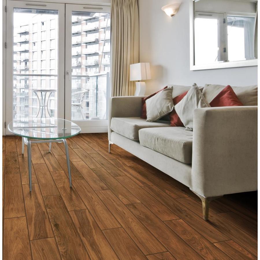 TRUE PORCELAIN CO. Pensacola Brown 6-in x 36-in Glazed Porcelain Wood Look Floor Tile