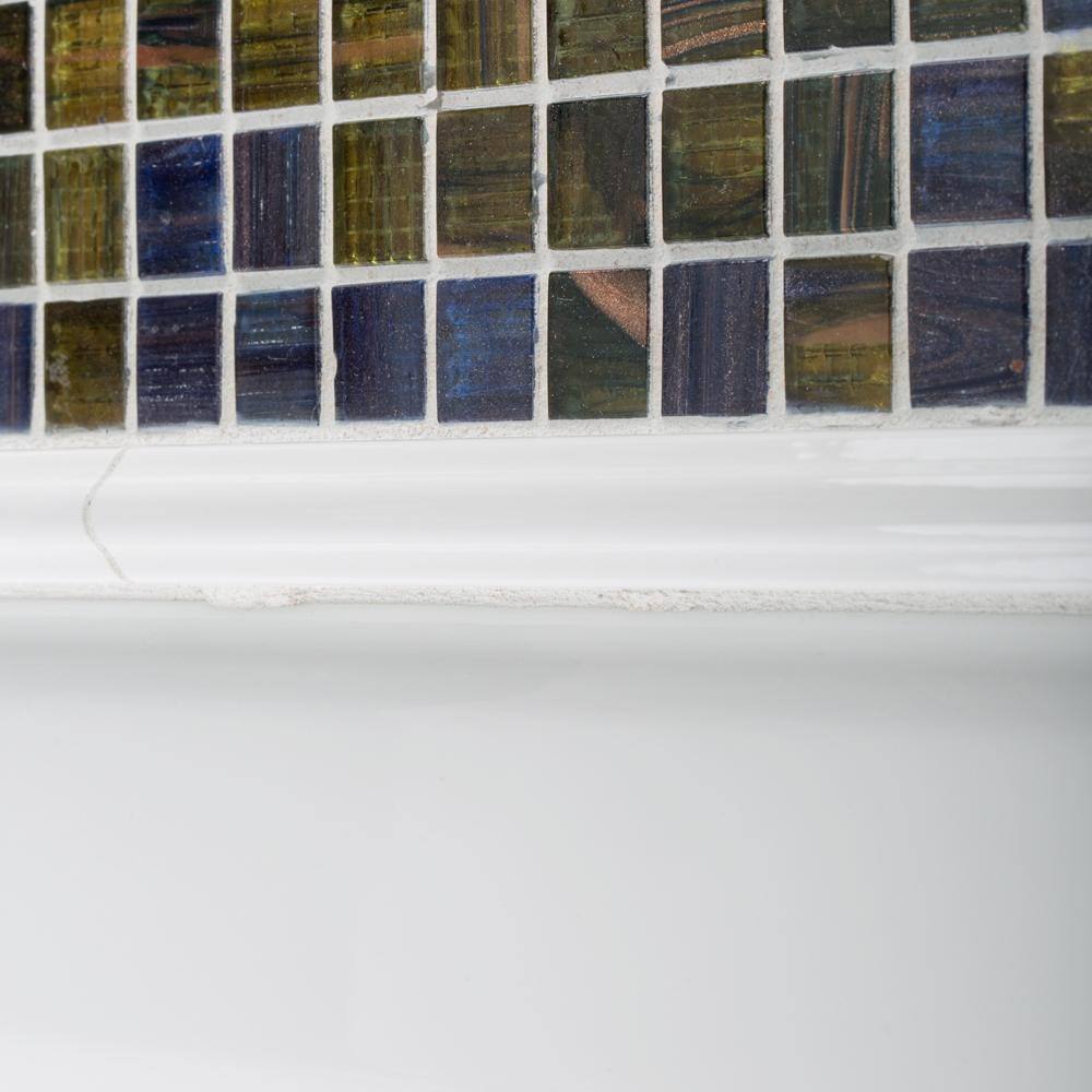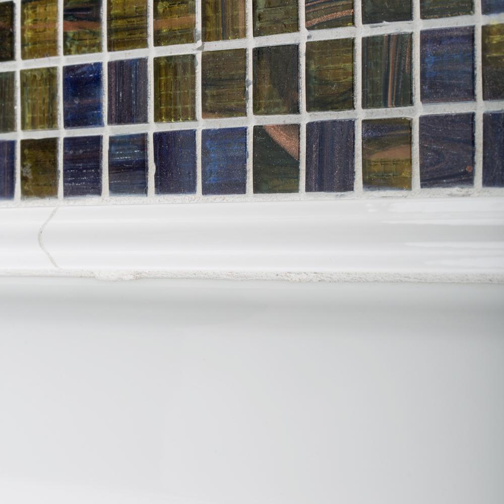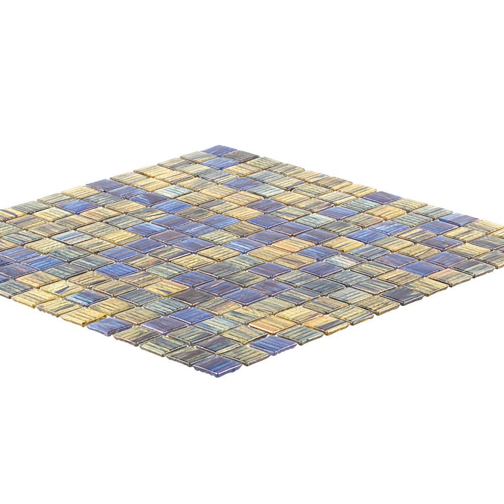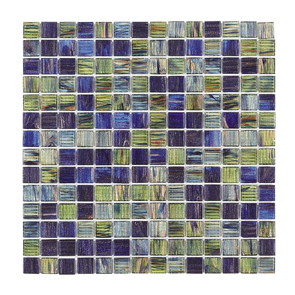 • Vivid Glass Mosaic: Multi-toned blue/green 1 x 1 in. squares deliver a glossy, high-shine look.