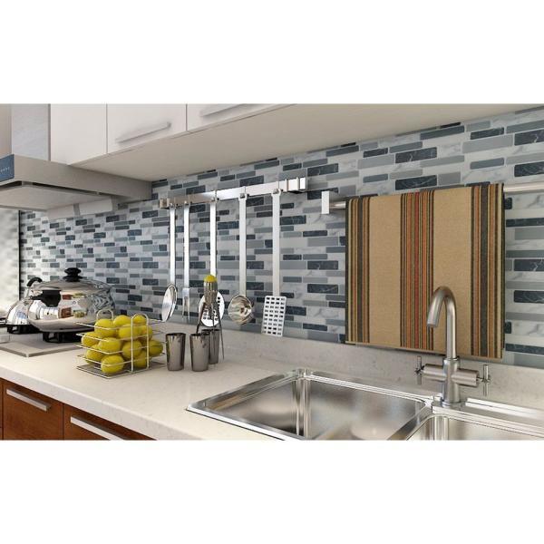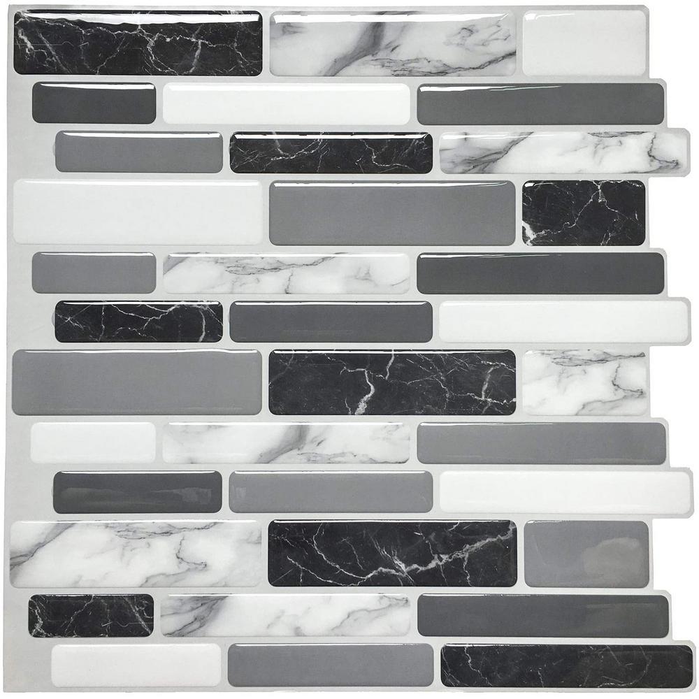 12 in. x 12 in. Grey Peel and Stick Wall Tile Backsplash for Kitchen (10-Pack)