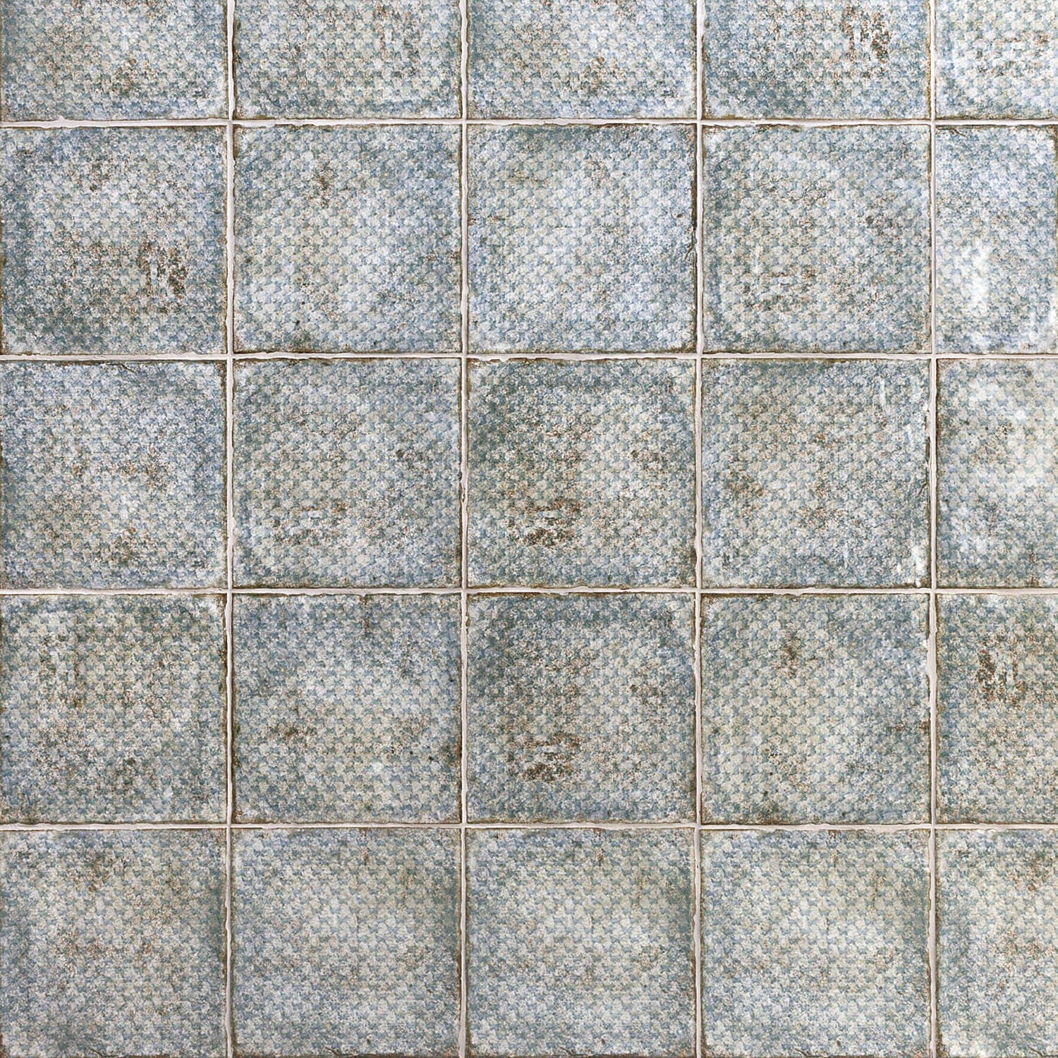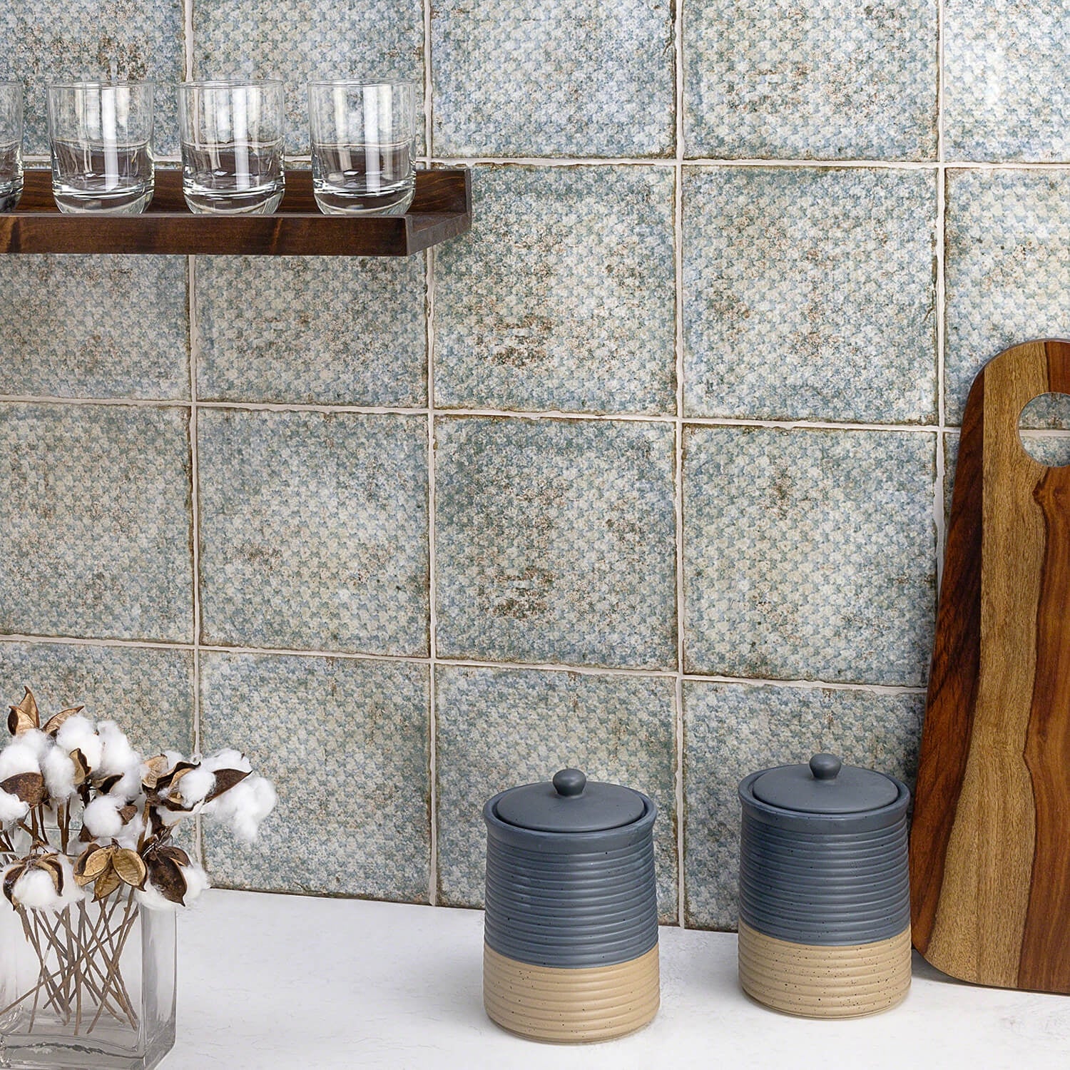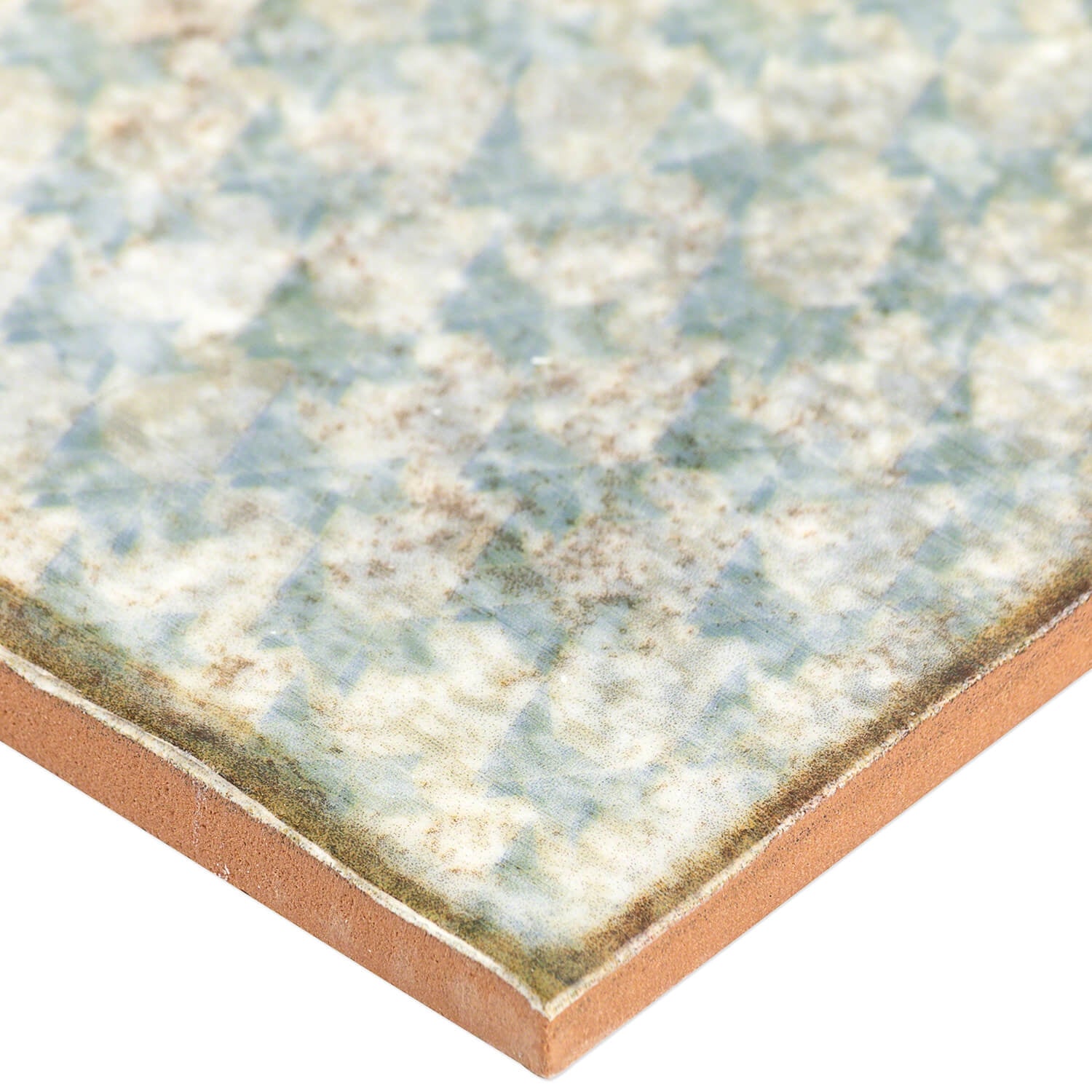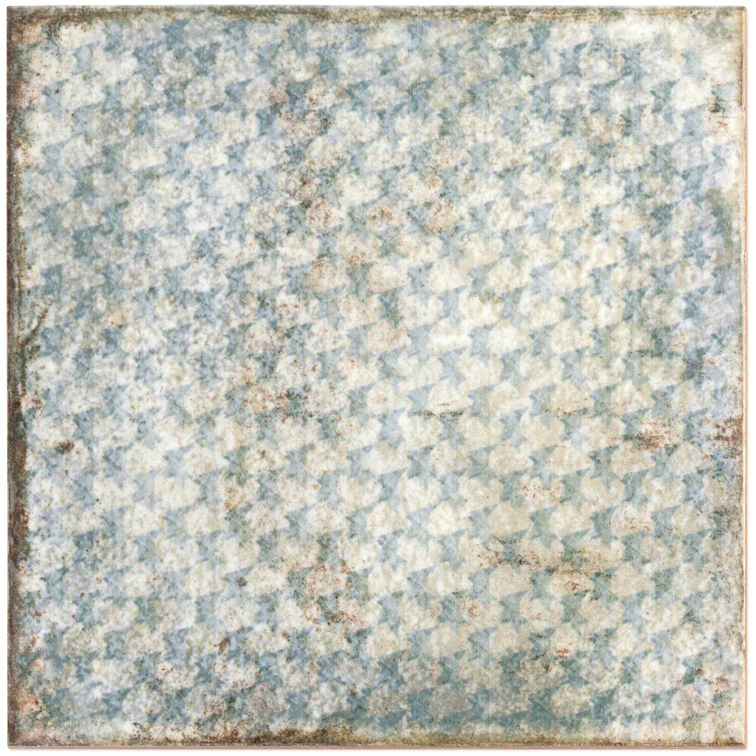 The Dunmore Sedan Decor Green Ceramic Tile, curated by Angela Harris, combines old-world charm with modern design. Featuring a vintage houndstooth pattern and teal hues, this polished ceramic tile is perfect for creating a stylish and sophisticated space.