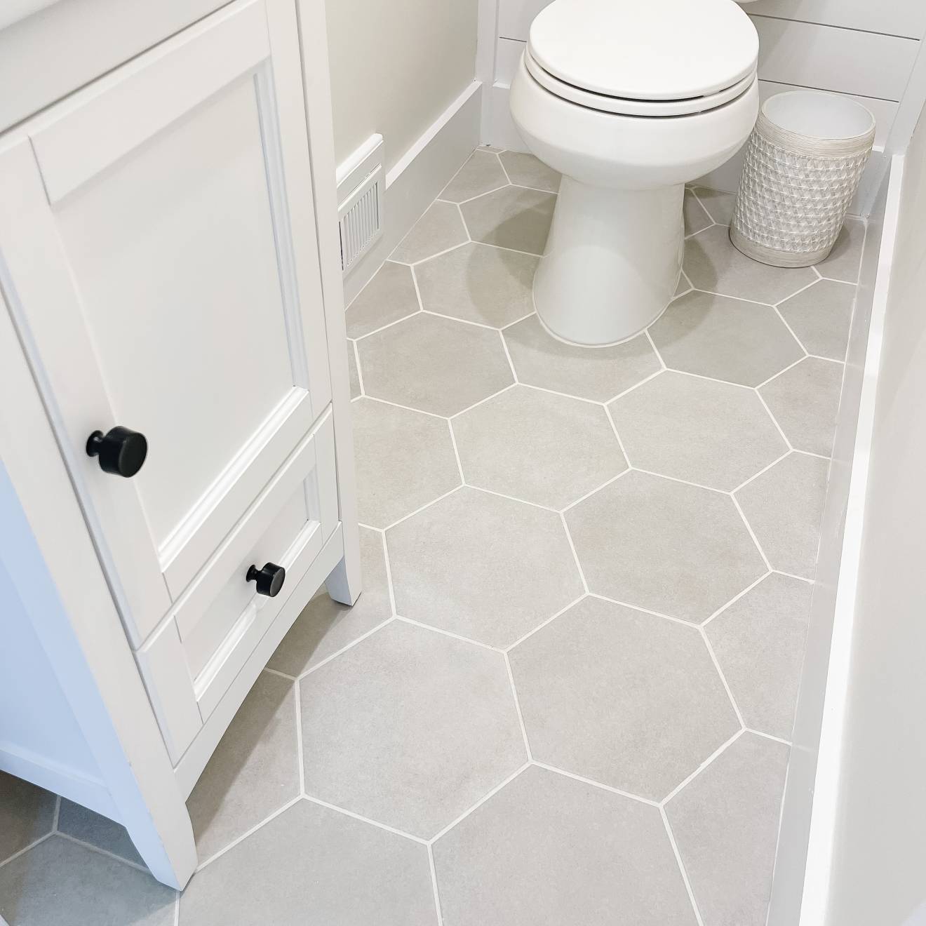 Elevate your space with Makoto Kumo Grey—order now to bring durable, modern hex style to your floors and walls.