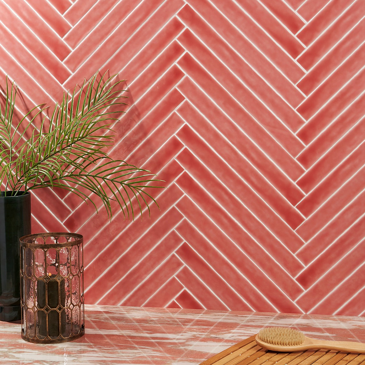The Carolina Coral Pink Tile is a masterpiece of color and craftsmanship. Its elongated design and high-gloss finish create a stunning visual impact, perfect for modern and classic interiors alike. Pair it with neutral tones to let its vibrant hue shine, or use it as a bold accent in a monochromatic scheme. This tile is not just a wall covering; it's a statement of style and sophistication.