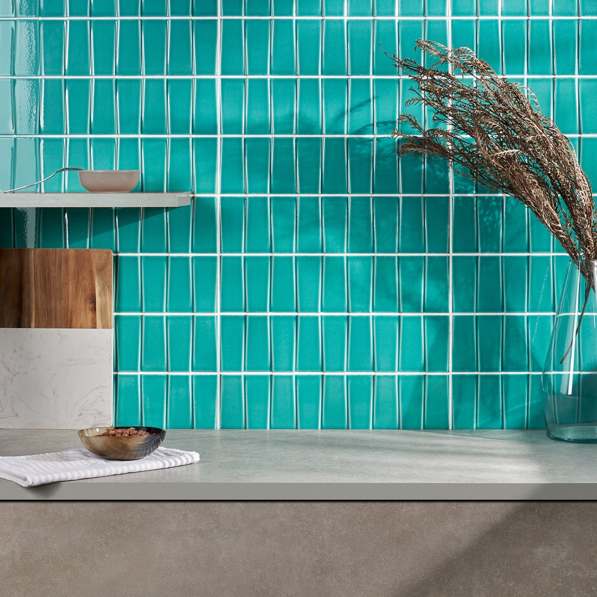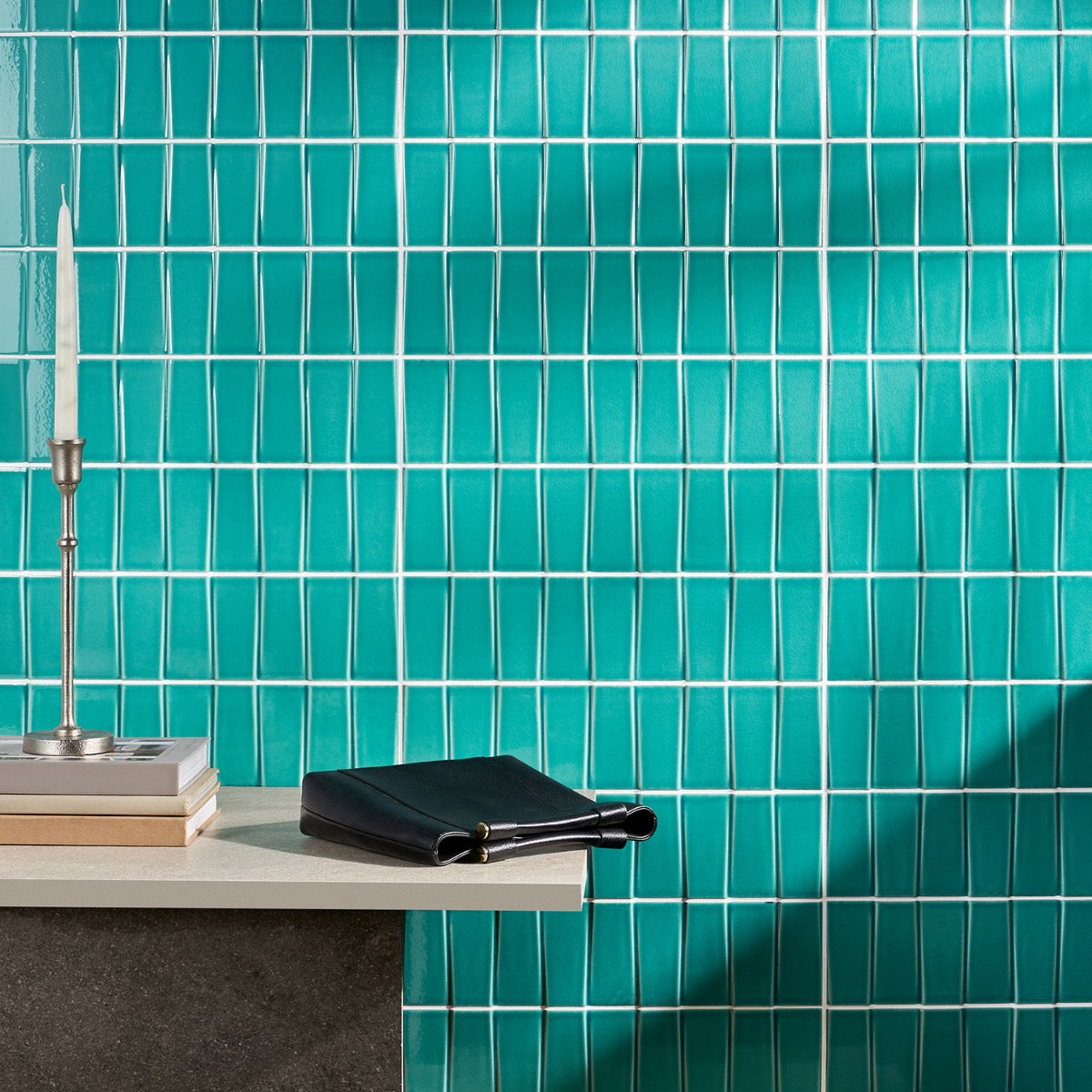 Transform your space with the artisanal beauty of the Colorplay Steps Teal Green Ceramic Tile.