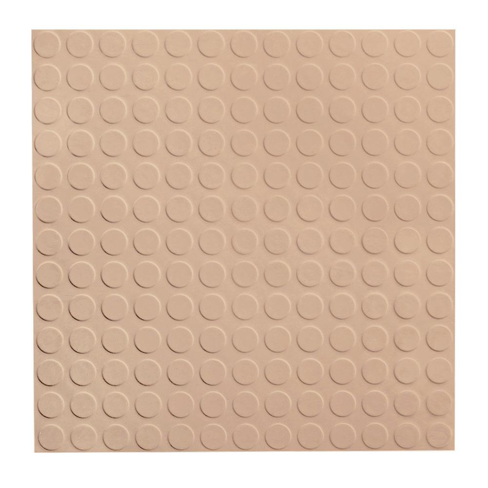 This rubber tile brings an architectural rhythm to the floor, its raised radial pattern catching light like a modern bas-relief. The warm Doe hue softens the industrial edge, making it chic yet hardworking. Pair it with matte black fixtures and pale oak accents for a refined, performance-forward space. It’s the luxe foundation that marries style with everyday resilience.