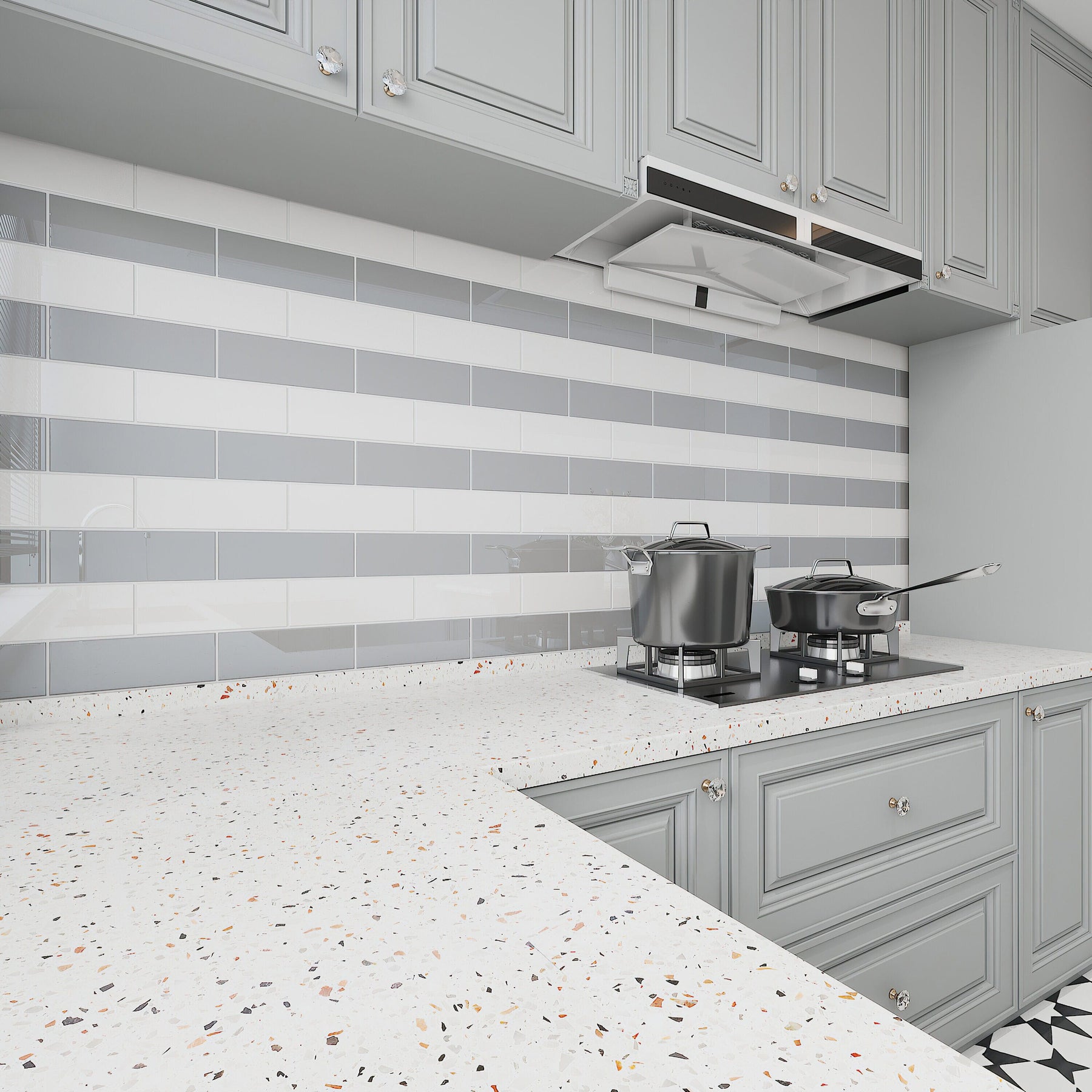 A: No, the True Gray Glossy Glass Subway Tile is intended for wall applications only and is not suitable for flooring.