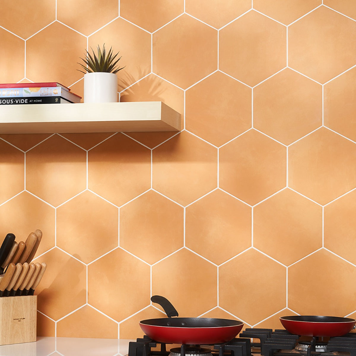 HexArt Orange 8" Hexagon Matte Porcelain Tile - Lux Tile