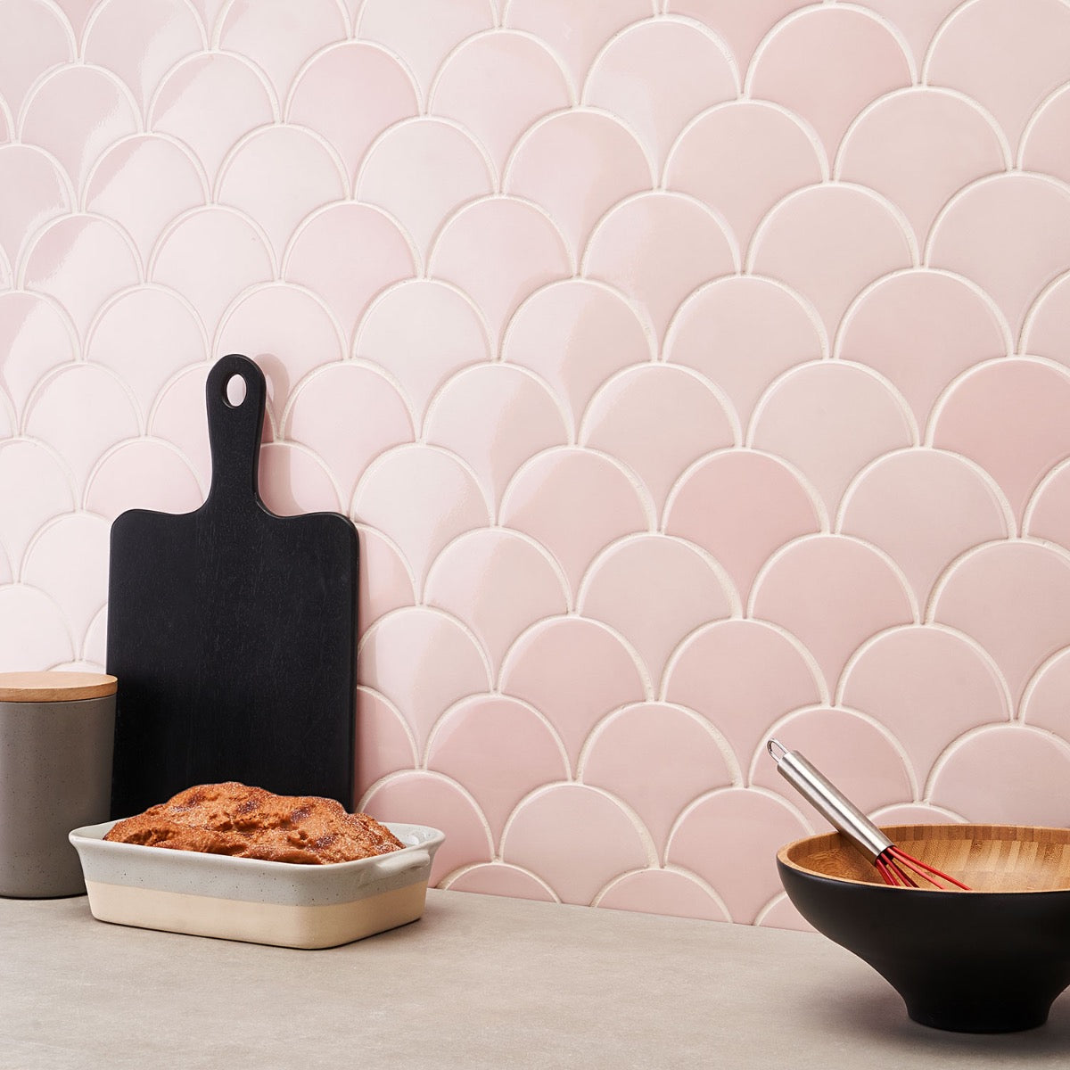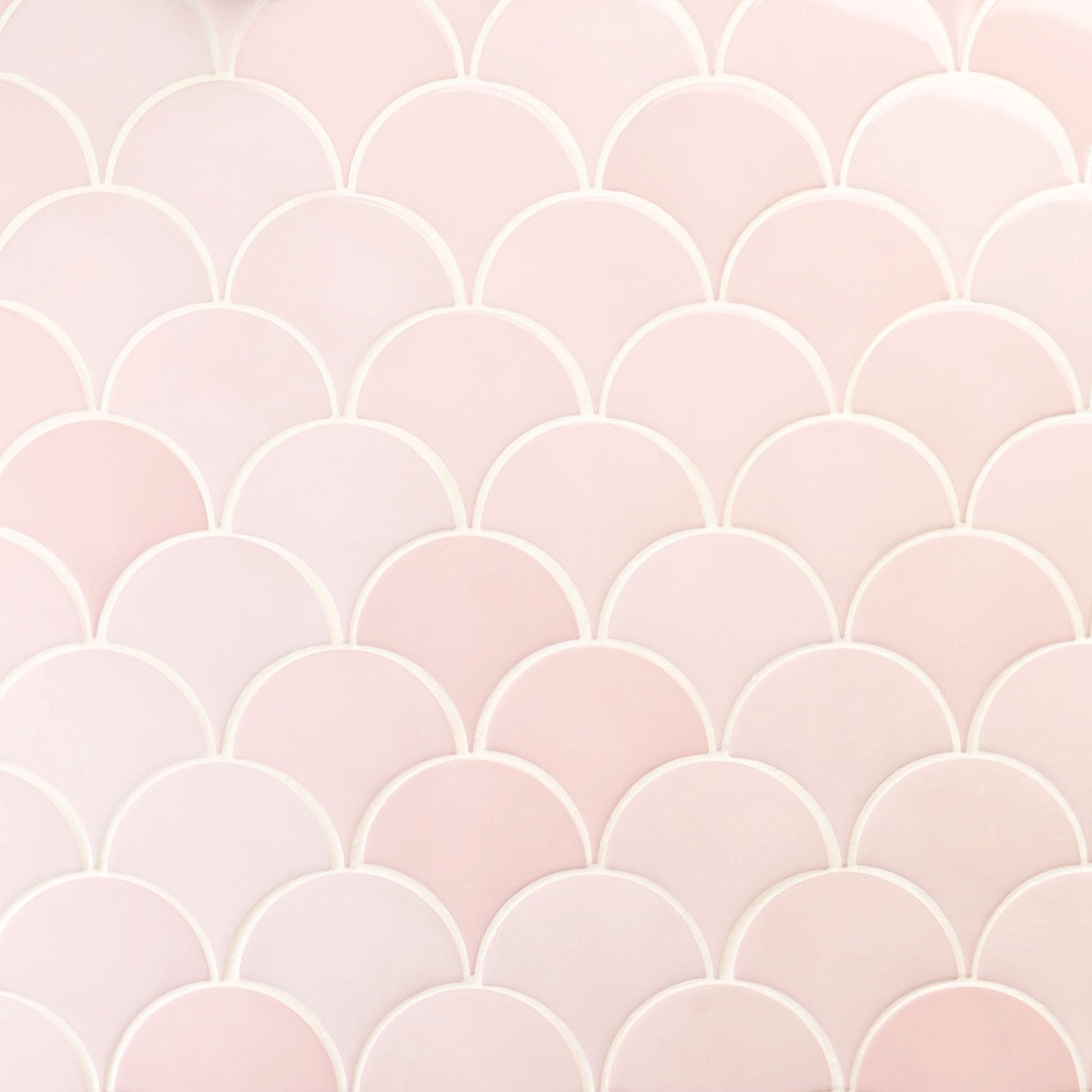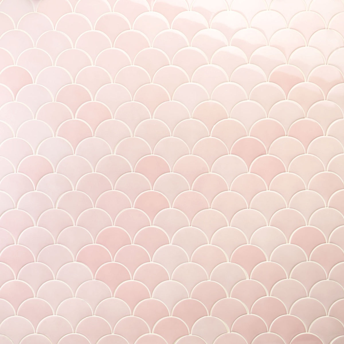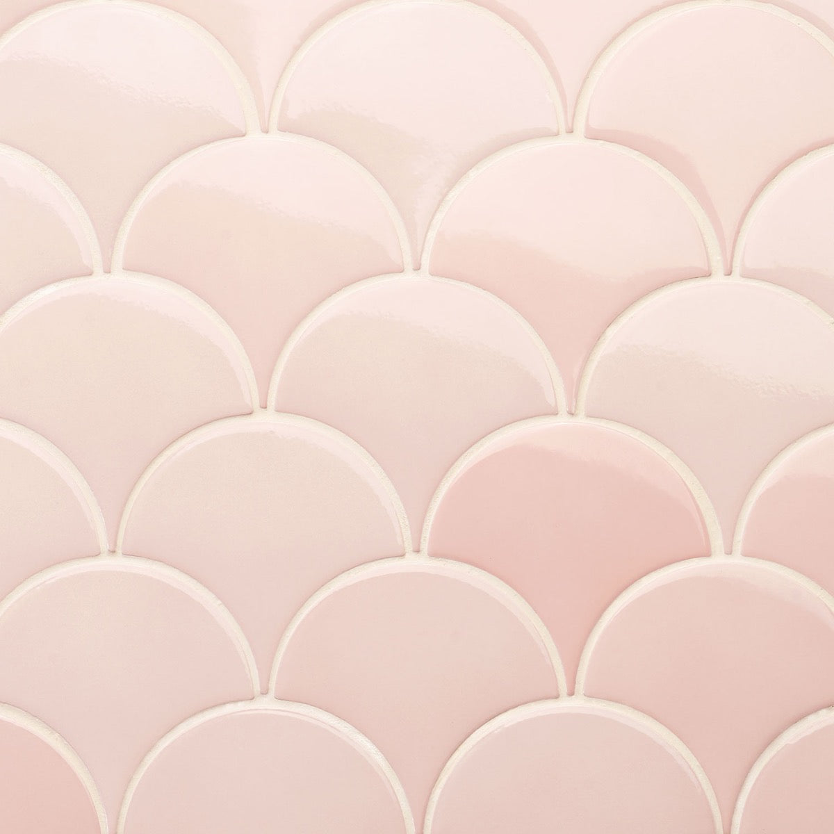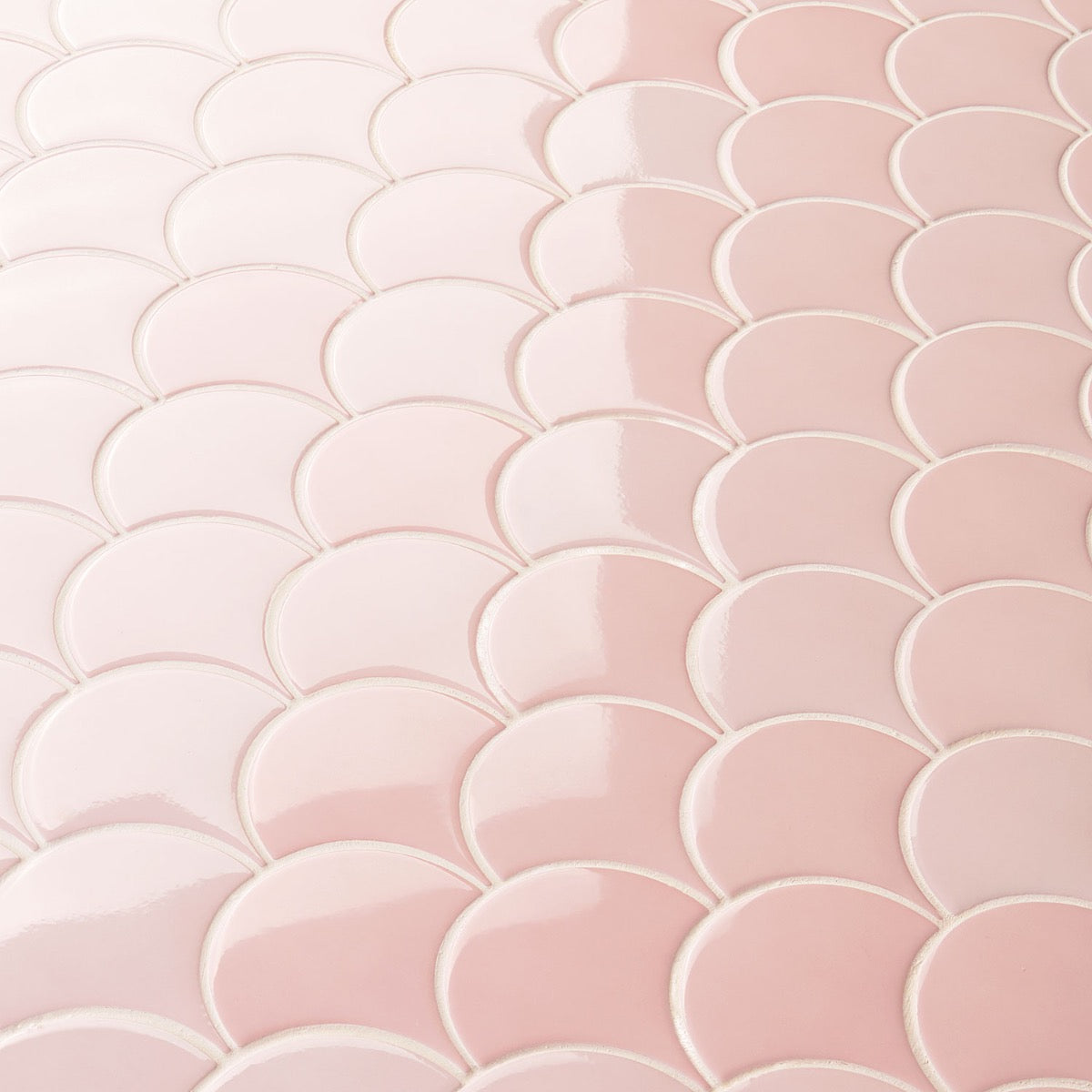 Transform your space with the elegant Highwater Rose Pink Fish Scale Tile today!