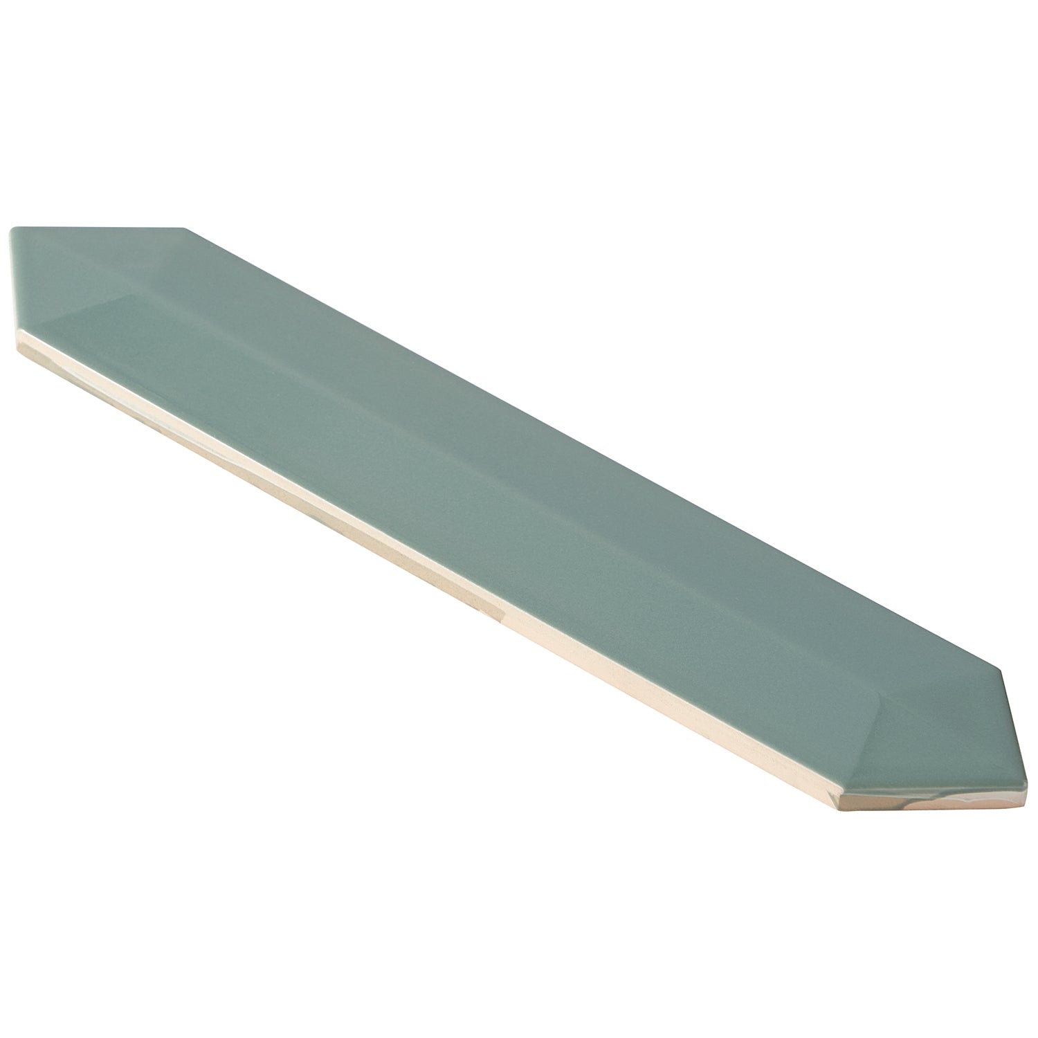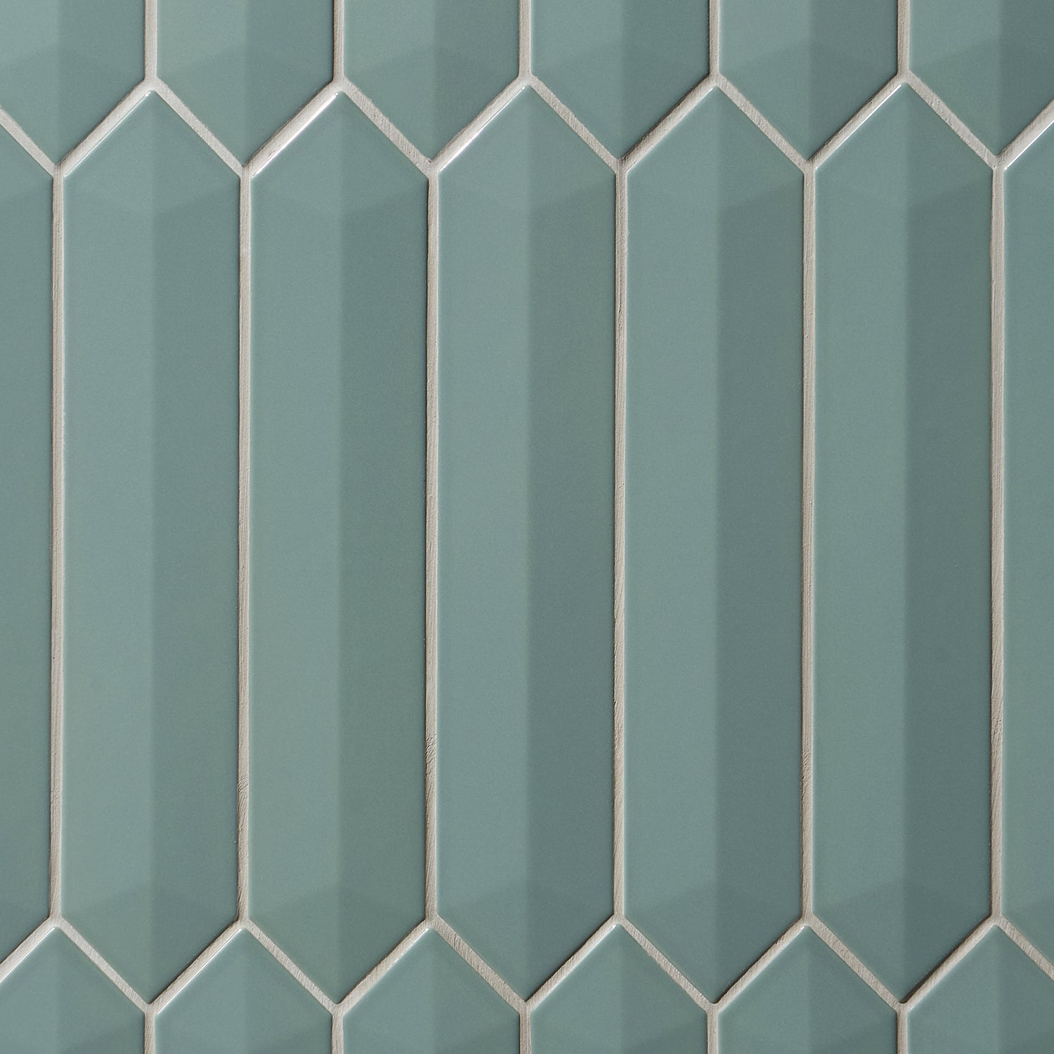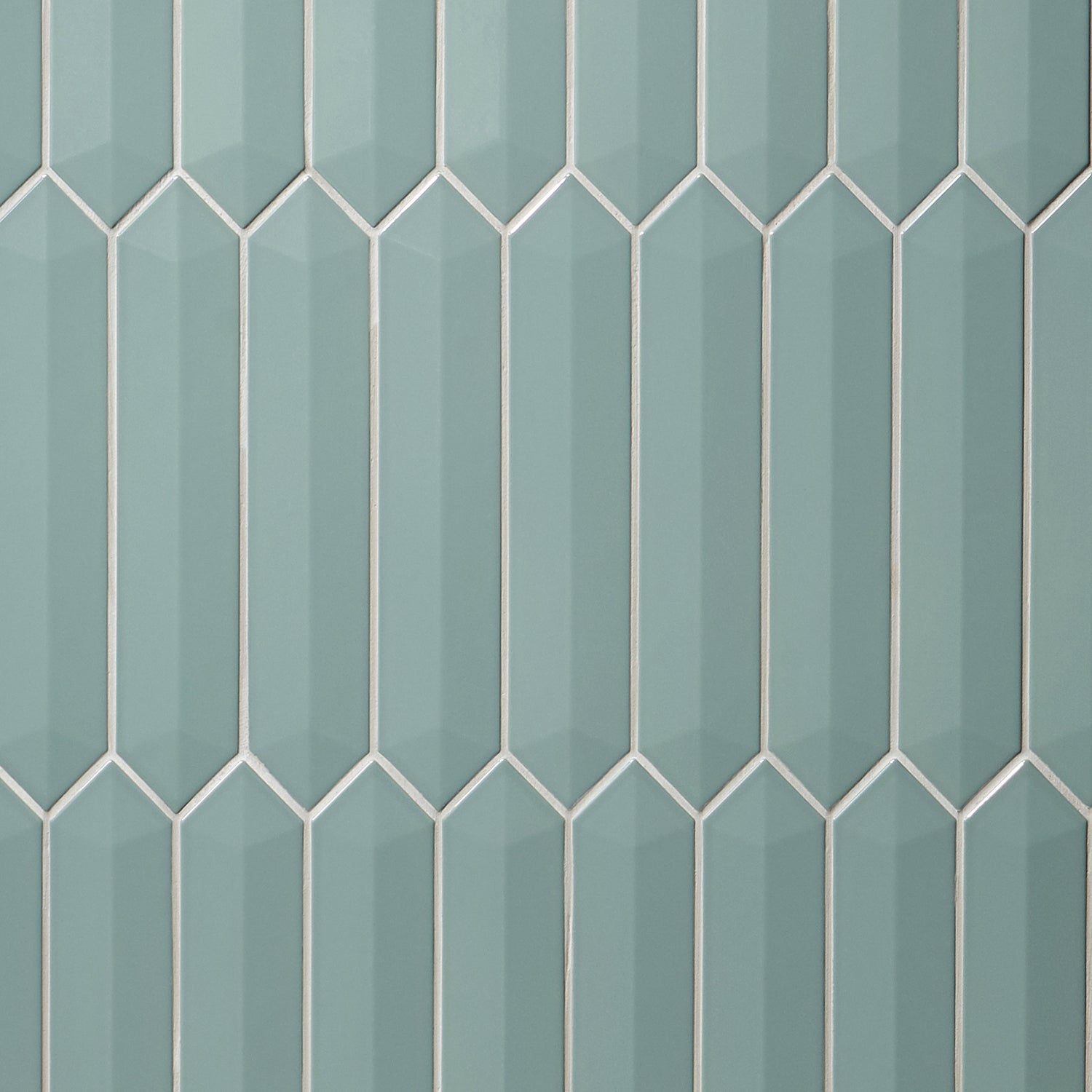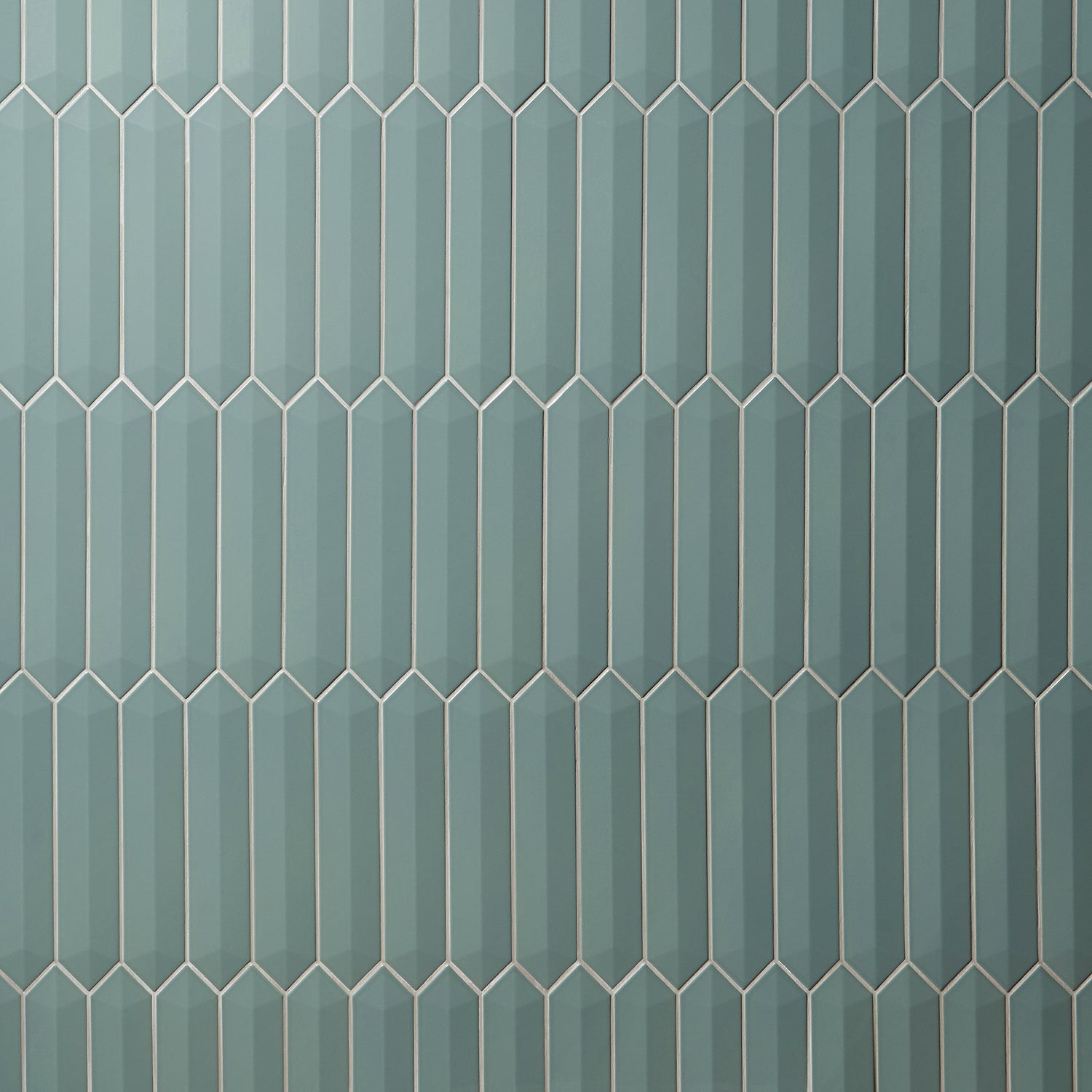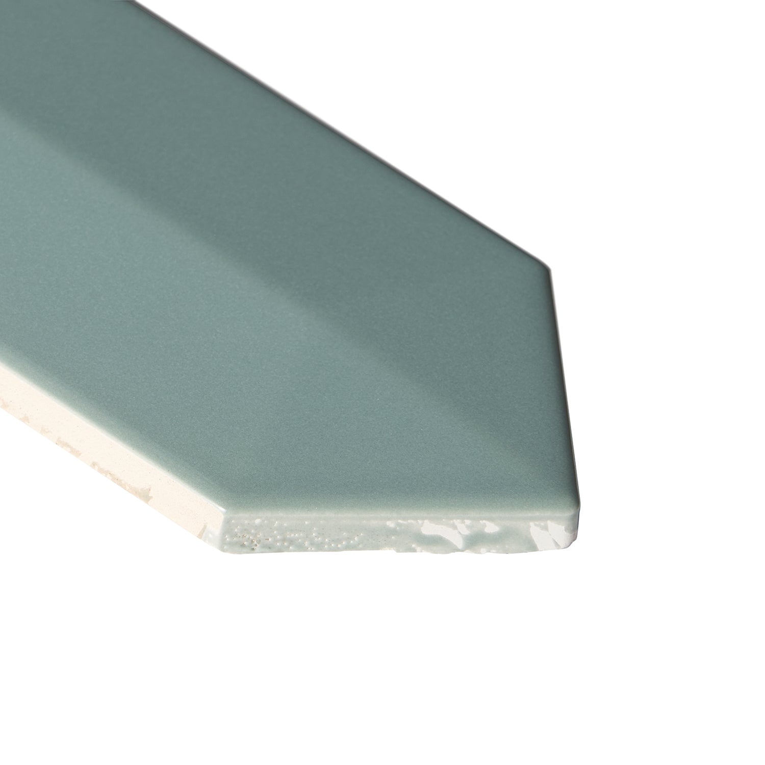 The Kent Jade Green Ceramic Tile features a polished finish and a unique 3D picket design, perfect for accent walls or backsplashes. Its elongated hexagonal shape adds a modern touch to any space.