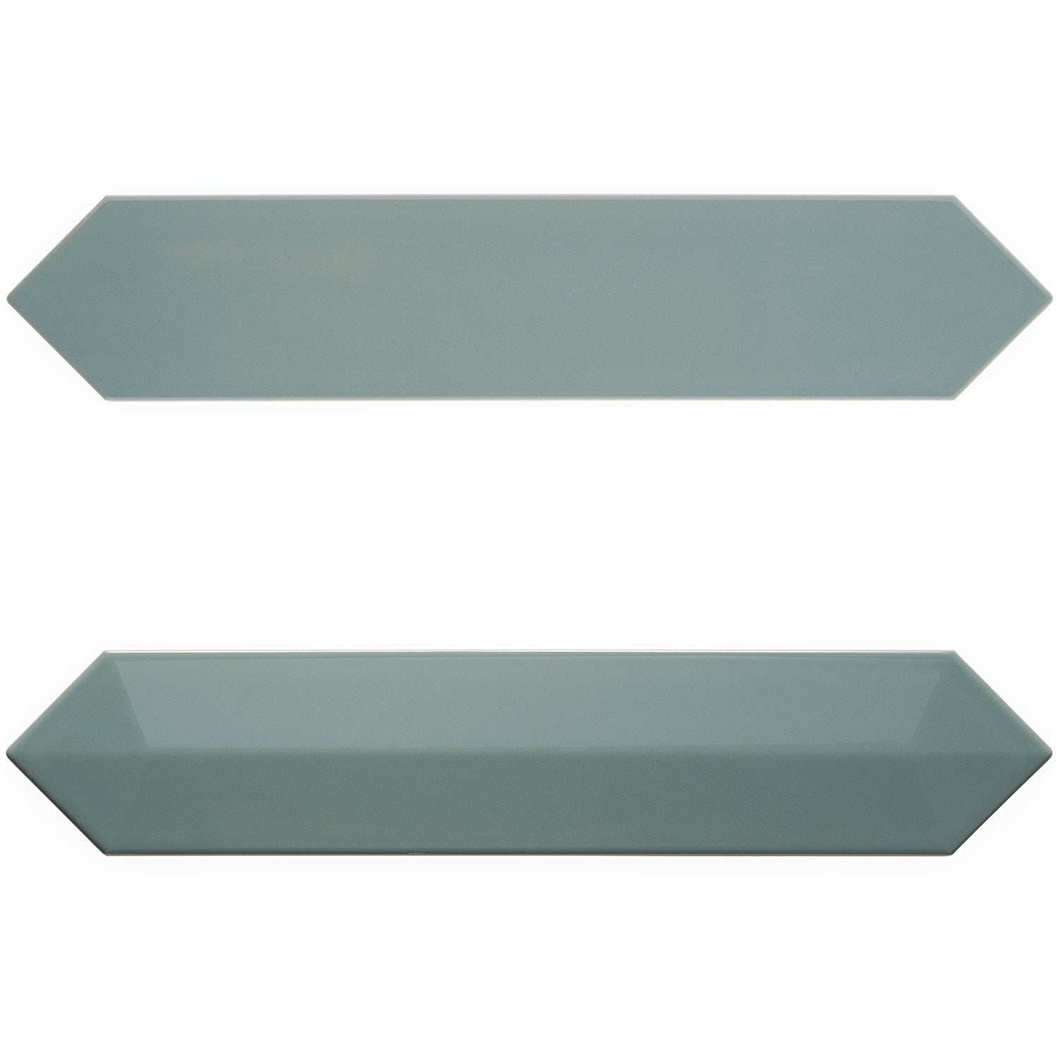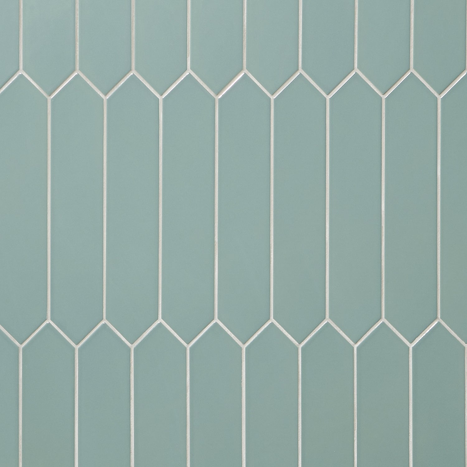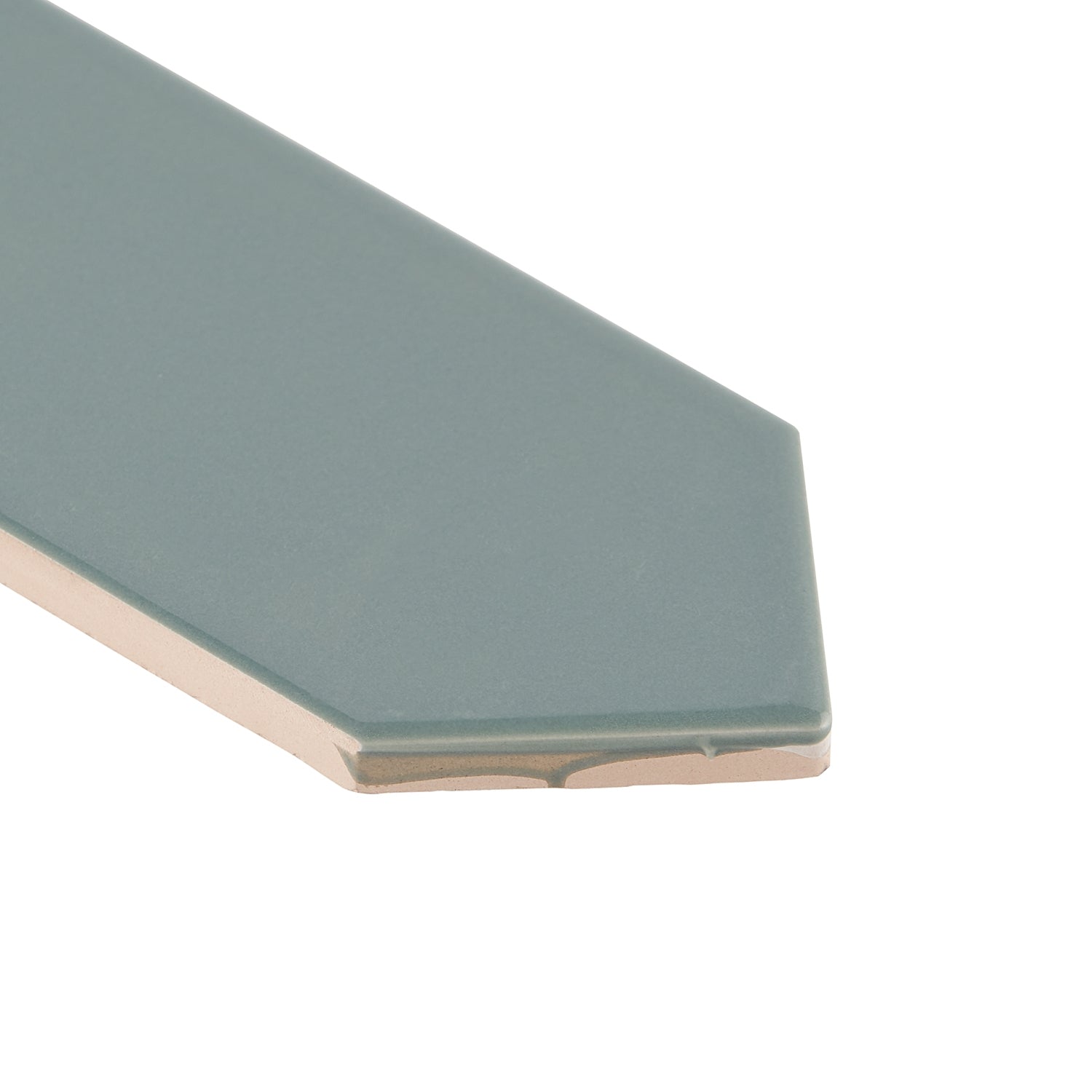 The Kent Jade Green Ceramic Tile features a polished finish and elongated picket hexagonal shape, perfect for accent walls or kitchen backsplashes. Its natural green tone adds a subtle twist to any space.