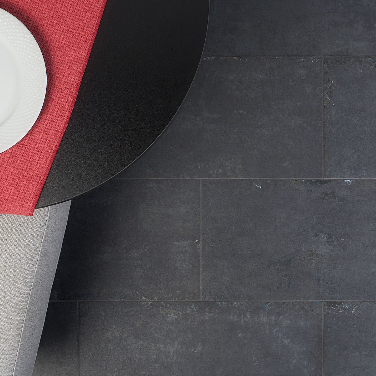 The Portrait Black Matte Porcelain Tile offers a sophisticated concrete look with metallic undertones, perfect for both indoor and outdoor applications. Its durable porcelain construction ensures longevity, while the matte finish adds a modern touch to any space.