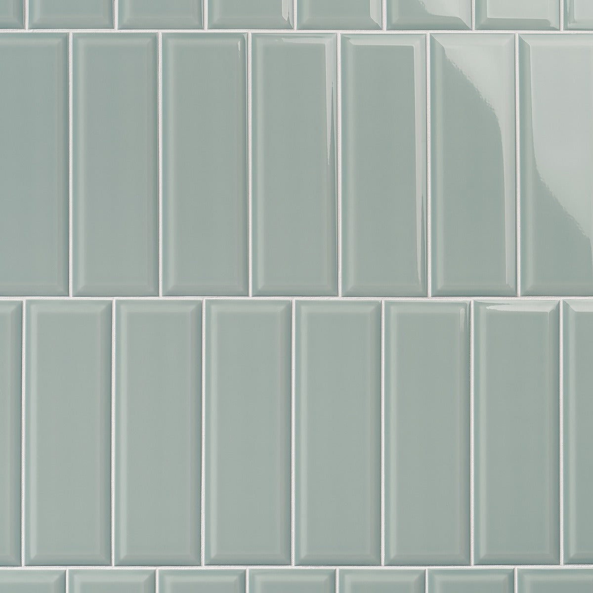 Lux Tile Rise Sage Green 4x12 Beveled Glossy Ceramic Subway Tile