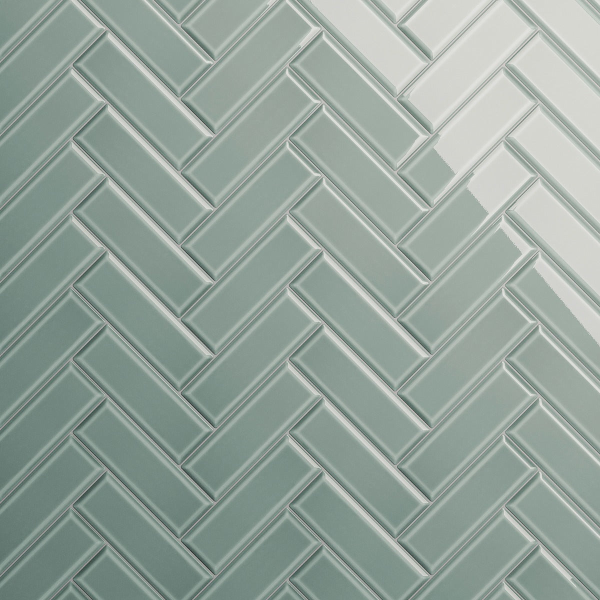 Customers appreciate the tile's elegant sage green color and the high-quality glossy finish. Many highlight its versatility in both modern and traditional settings. Some users note that the beveled edges add a unique depth to their spaces. A few customers mentioned the need for careful installation to align the beveled edges perfectly.
