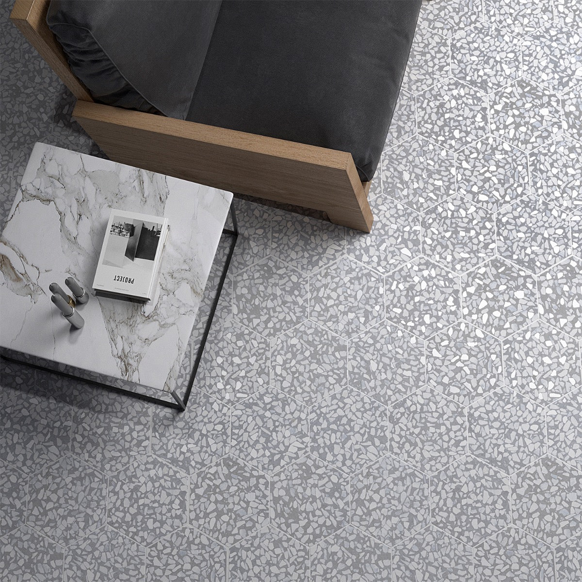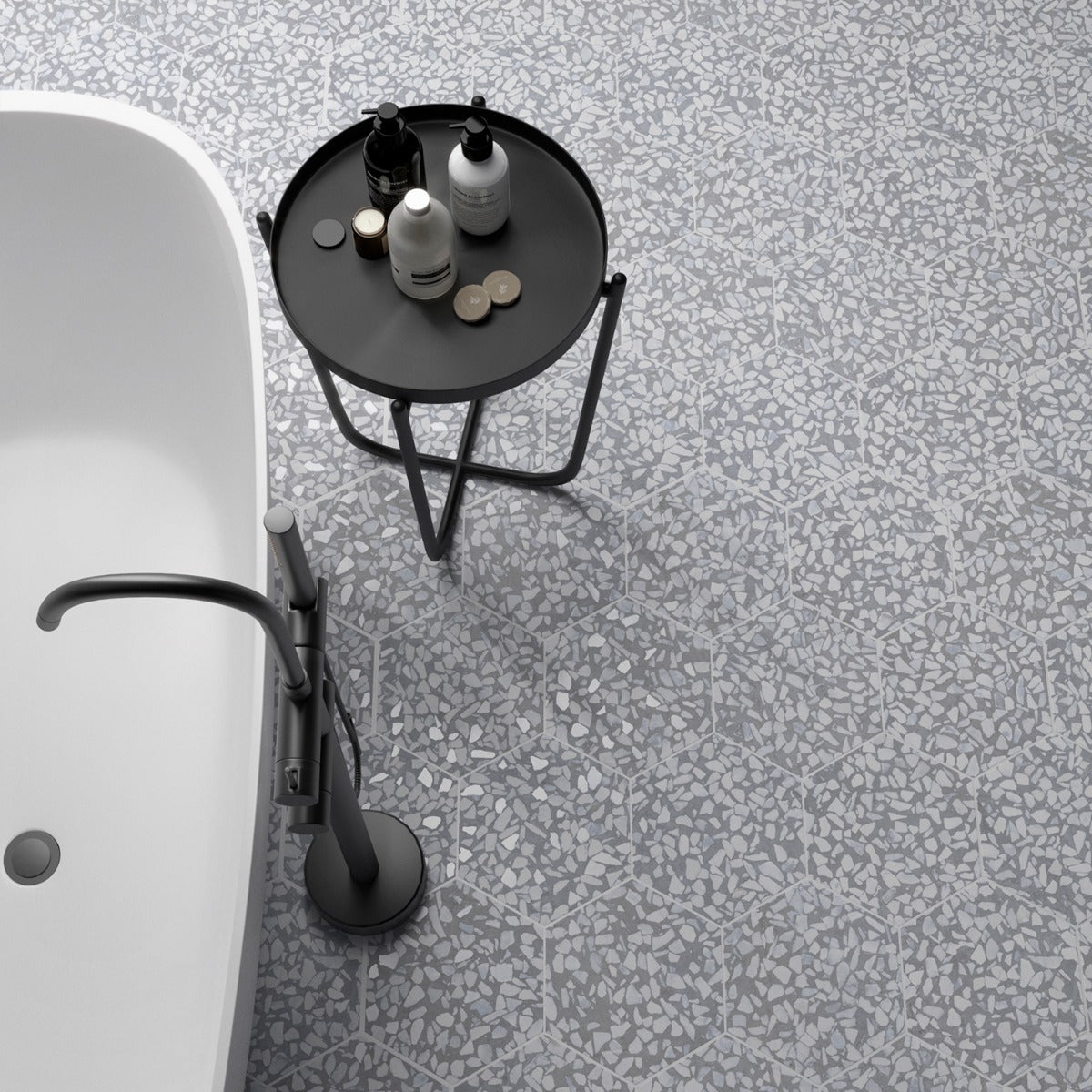 Transform your space with the stylish and durable Terrazzo Hex Azulio Tile—order now to elevate your design.