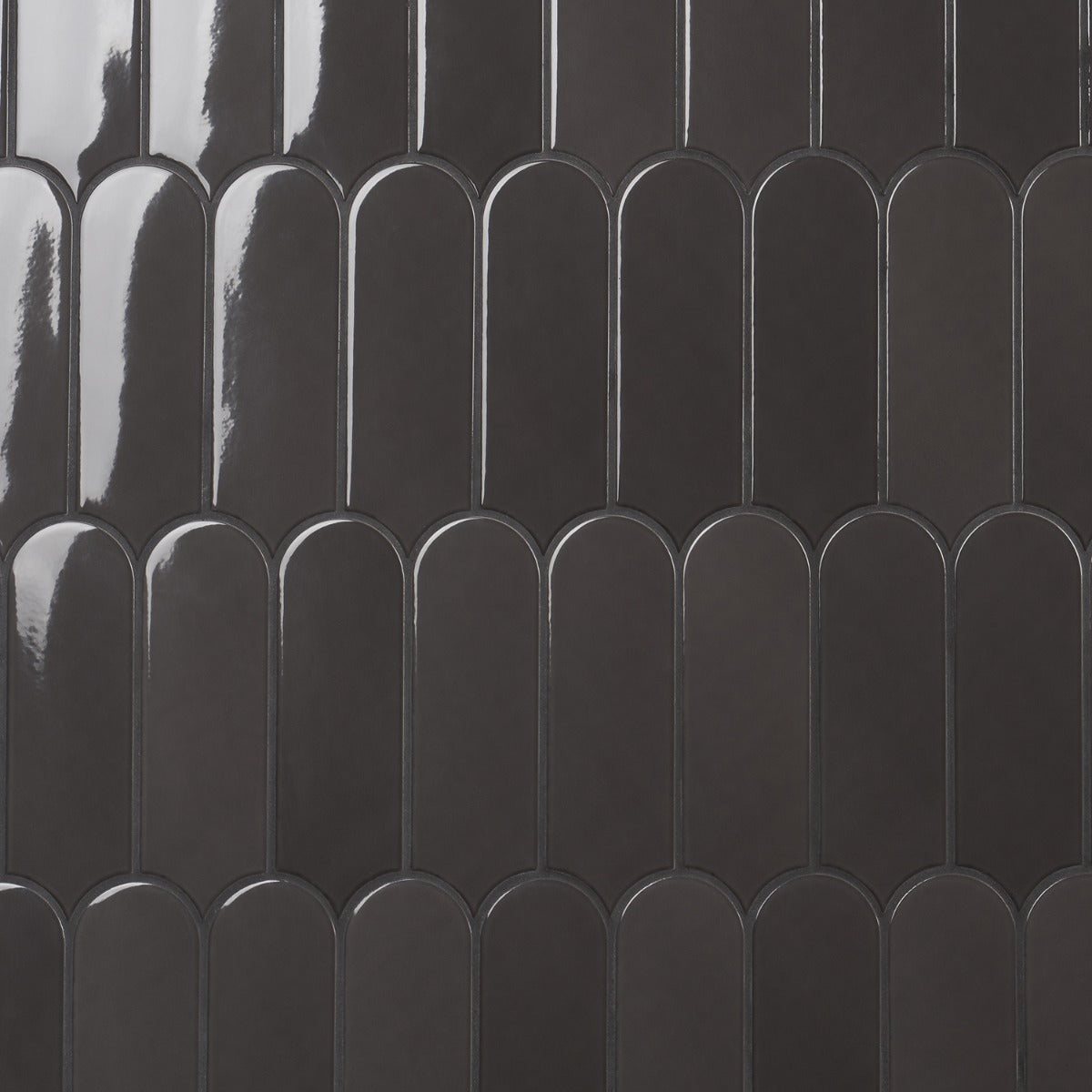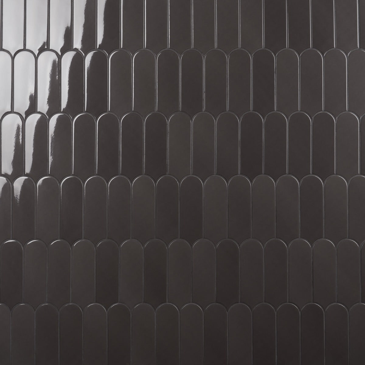 Parry Charcoal 3x8 Fishscale Glossy Ceramic Wall Tile by Lux Tile