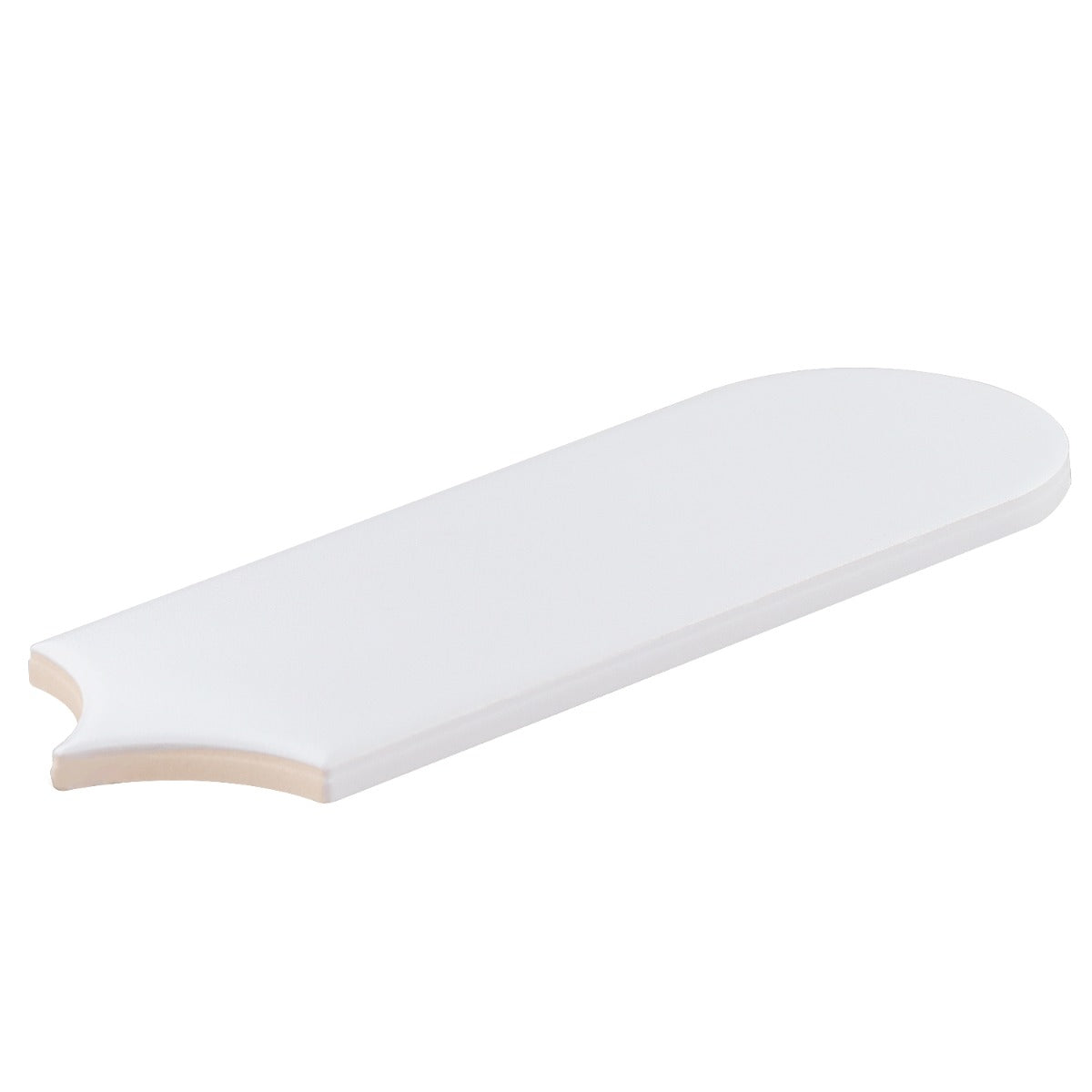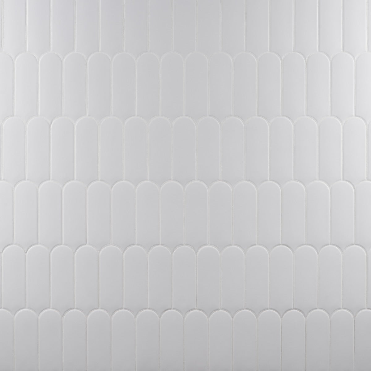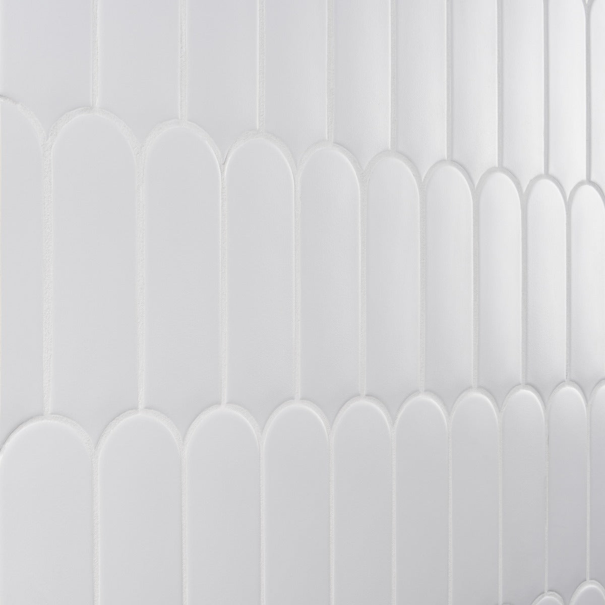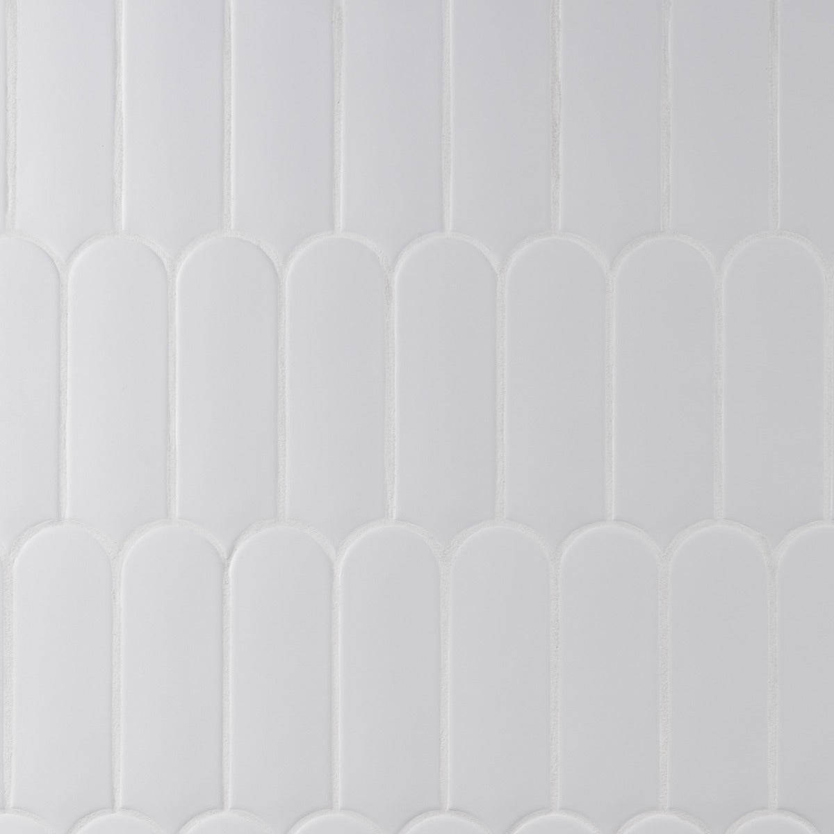 The Parry Mist Gray Fishscale Tile features a modern elongated fishscale design with a matte finish, perfect for creating stylish backsplashes, feature walls, and shower spaces. Made in Spain, this ceramic tile combines durability with a decorative look.