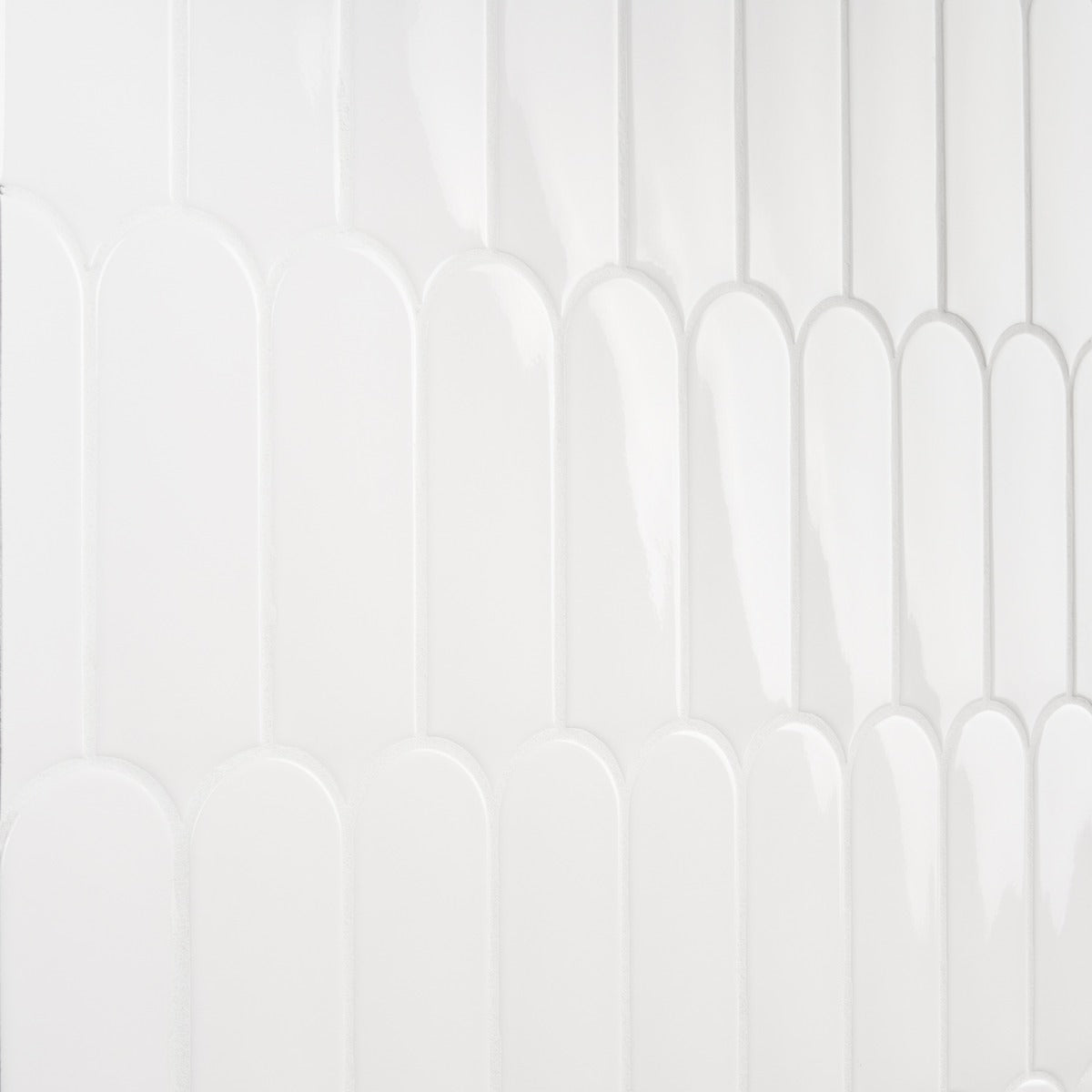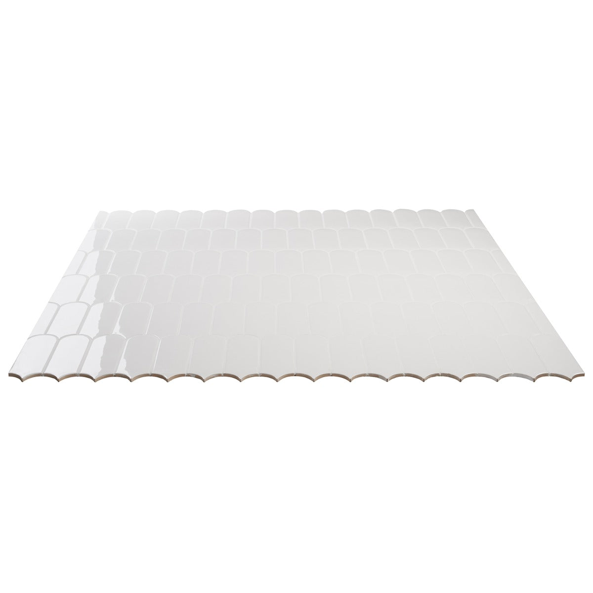 Parry White 3x8 Fishscale Glossy Ceramic Wall Tile - Tilebar