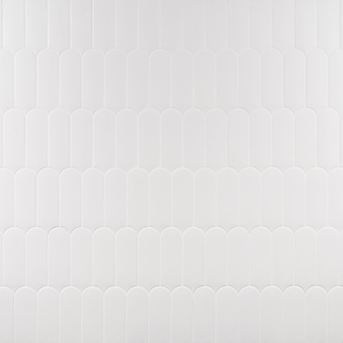 Parry White 3x8 Fishscale Matte Ceramic Wall Tile by Lux Tile