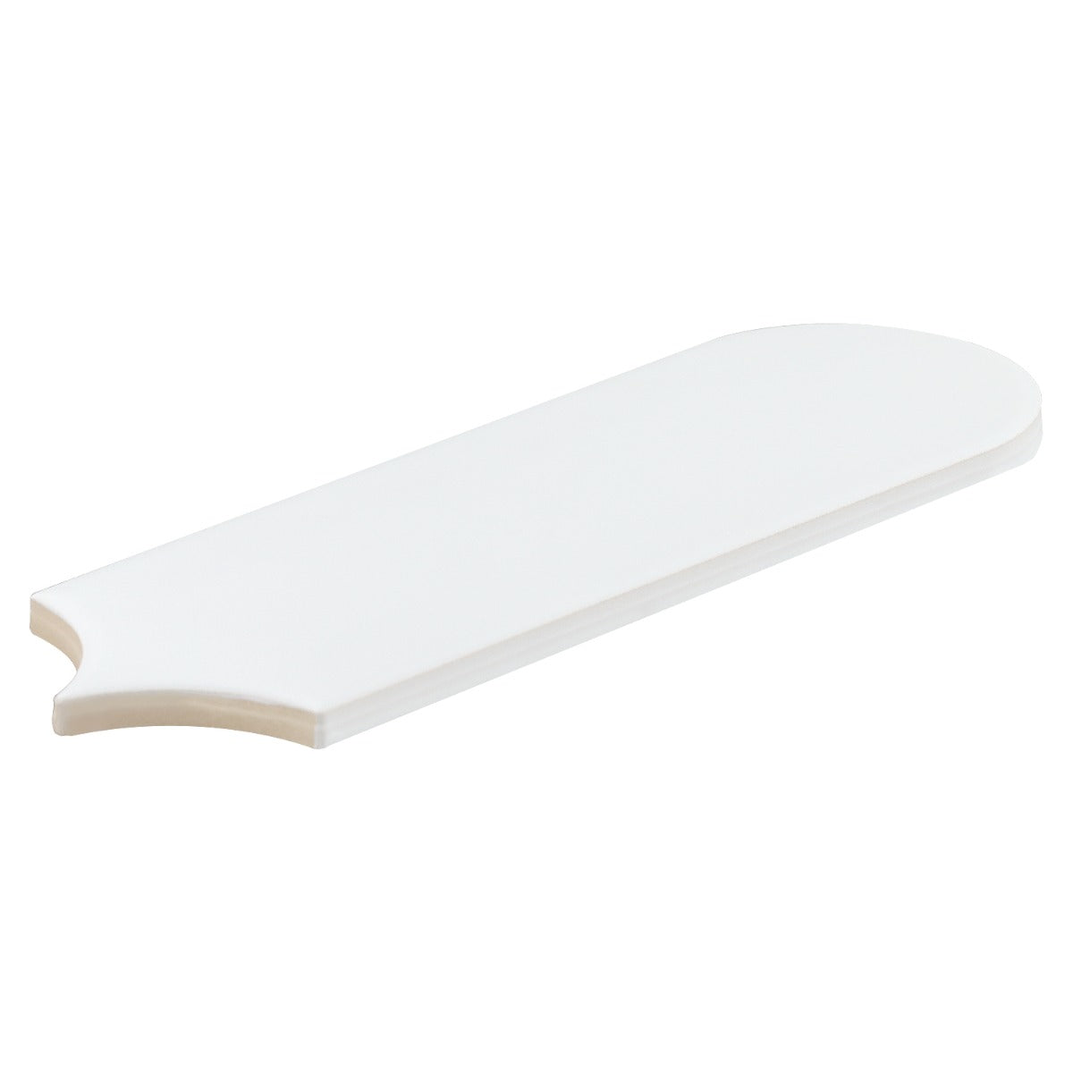 The Parry White 3x8 Matte Ceramic Tile features a unique fishscale design with a matte finish, perfect for adding a touch of Art Deco elegance to backsplashes, feature walls, and bathrooms. Its Spanish craftsmanship ensures quality and style.