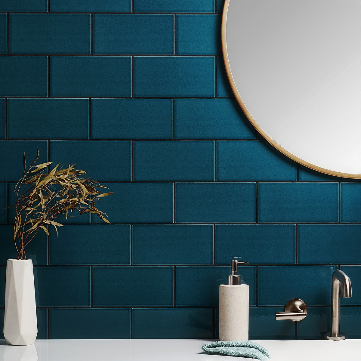 Seaside Marine Blue 4x8 Crackled Glossy Ceramic Tile - Lux Tile
