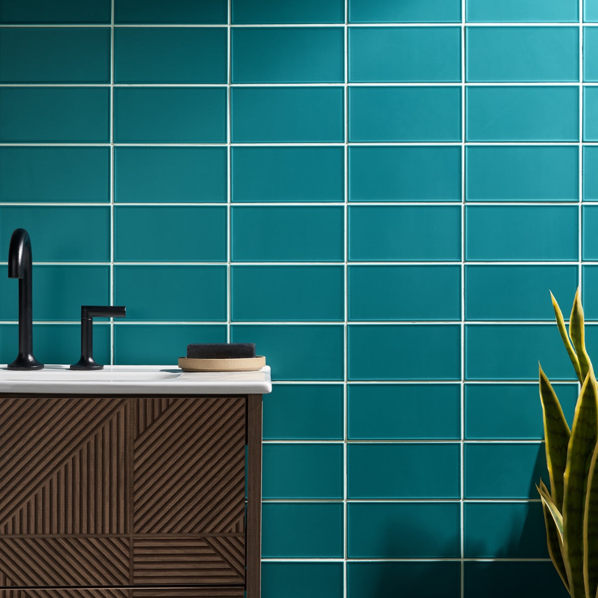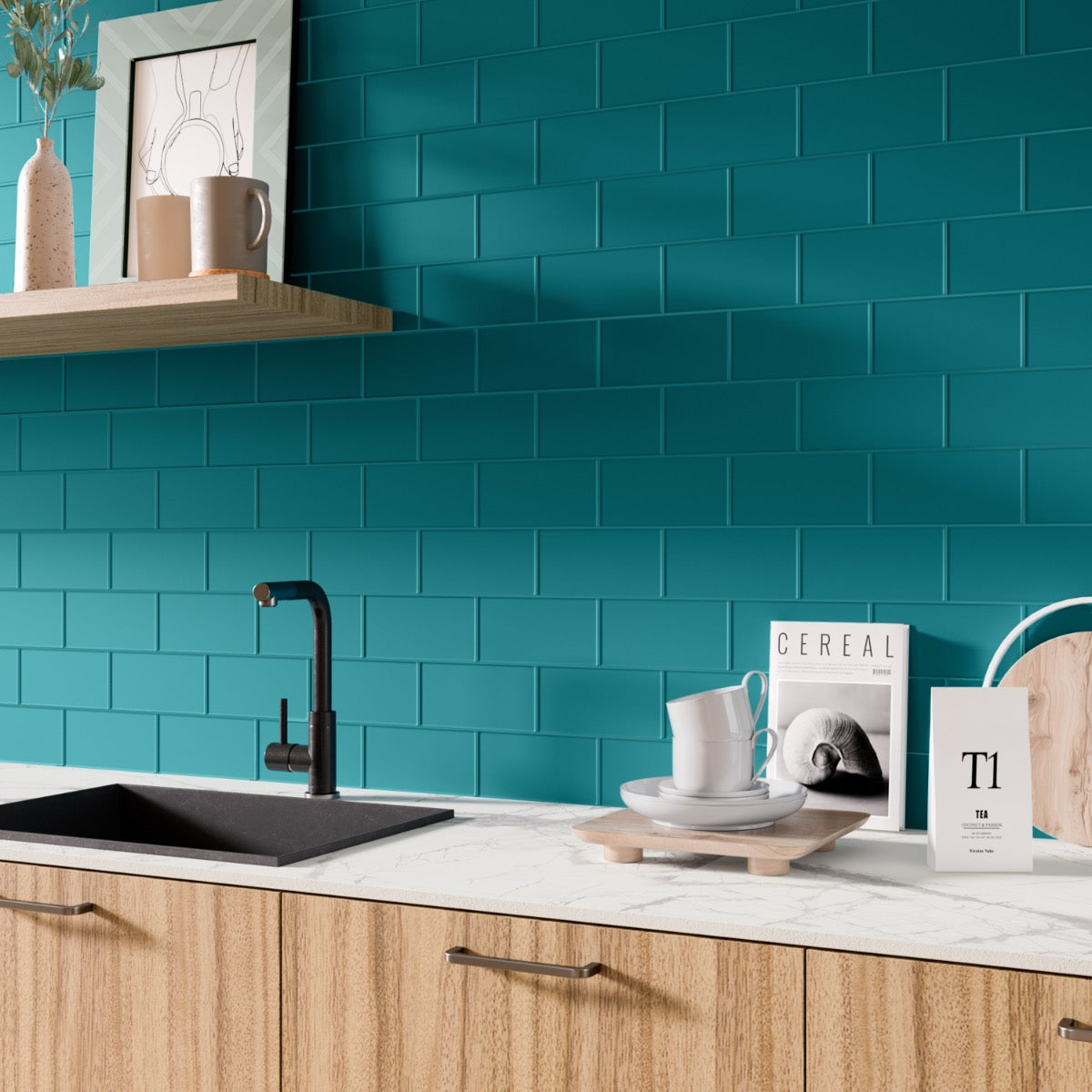 Transform your space with the vibrant and versatile Maddox Frame Teal Blue Subway Tile today!
