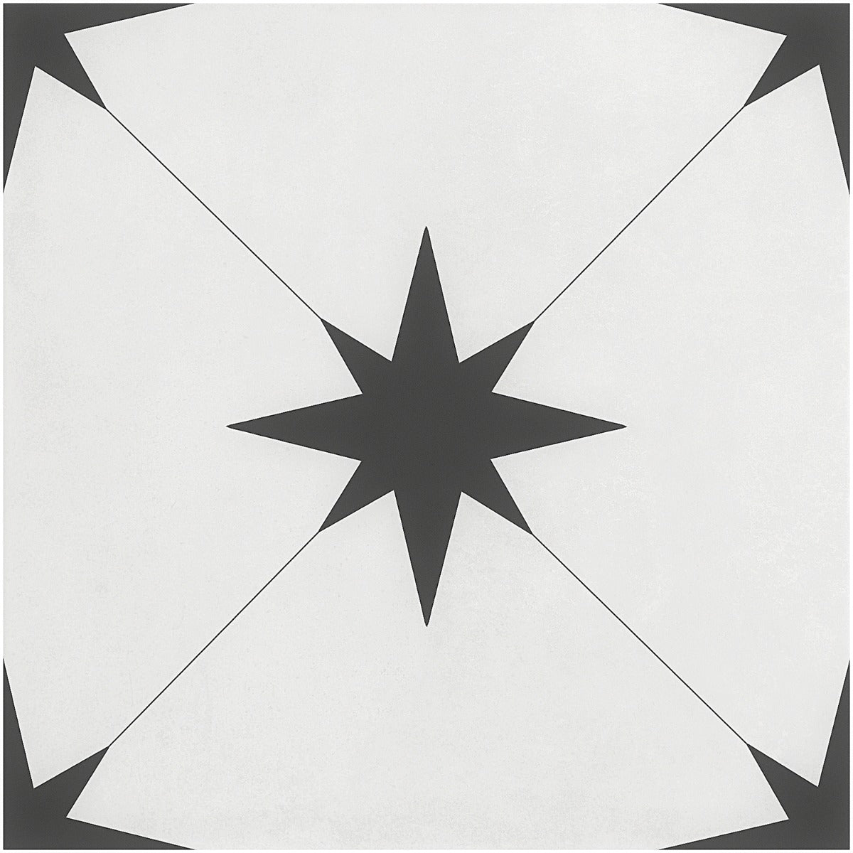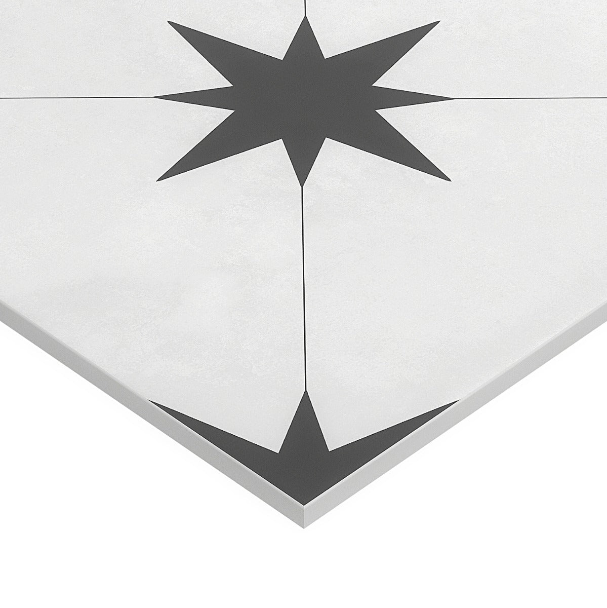 The Tau Blanco White Matte Porcelain Tile is a masterpiece of design, blending Mediterranean charm with modern practicality. Its black star pattern on a pristine white background creates a striking visual impact, perfect for both contemporary and traditional interiors. Use it to create a feature wall or a statement floor, and pair it with natural wood accents for a warm, inviting look. This tile is not just a surface; it's a canvas for your creativity, bringing a touch of luxury to any space.