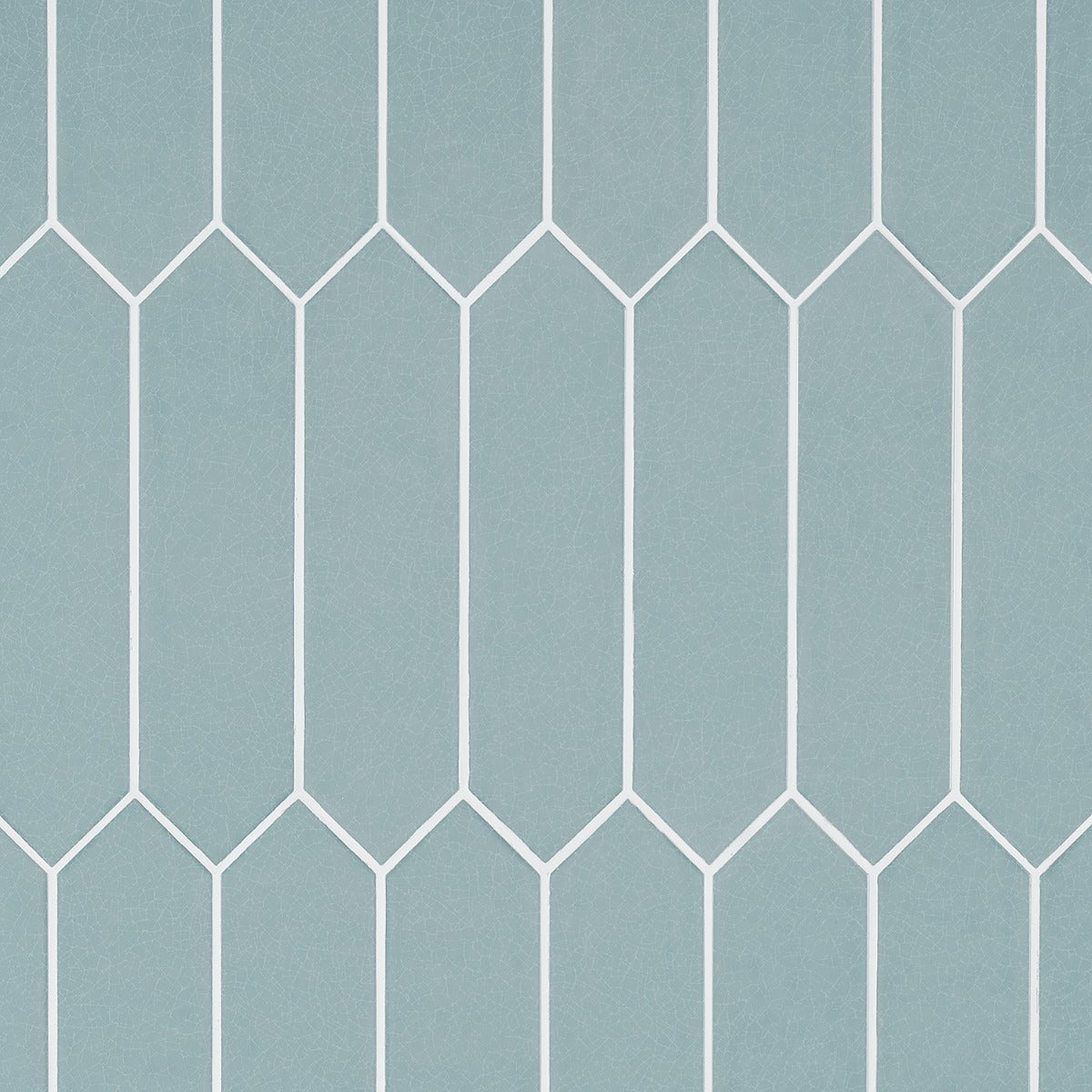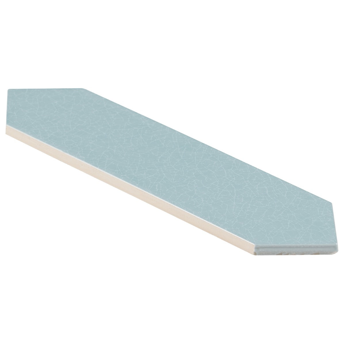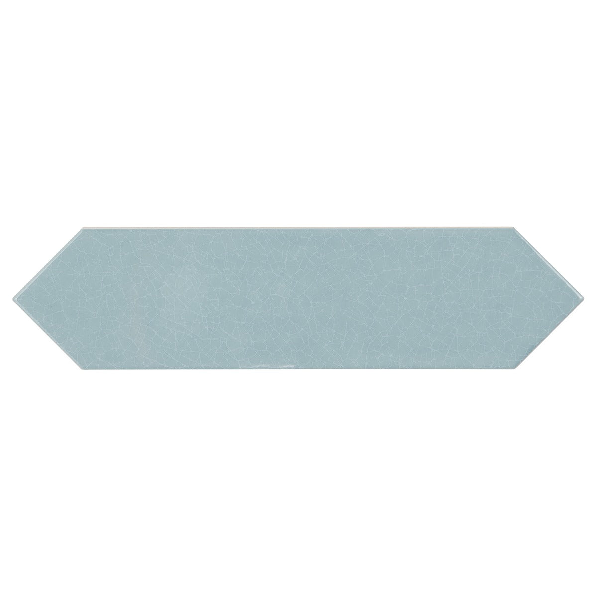 The Tehama Crackled Blue Ceramic Tile features a unique picket shape and a crackled glass finish, offering a vintage-inspired look with a modern twist. Perfect for backsplashes or feature walls, it adds depth and dimension to any space.