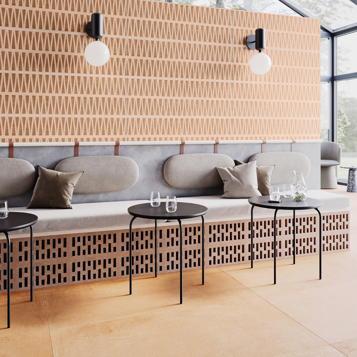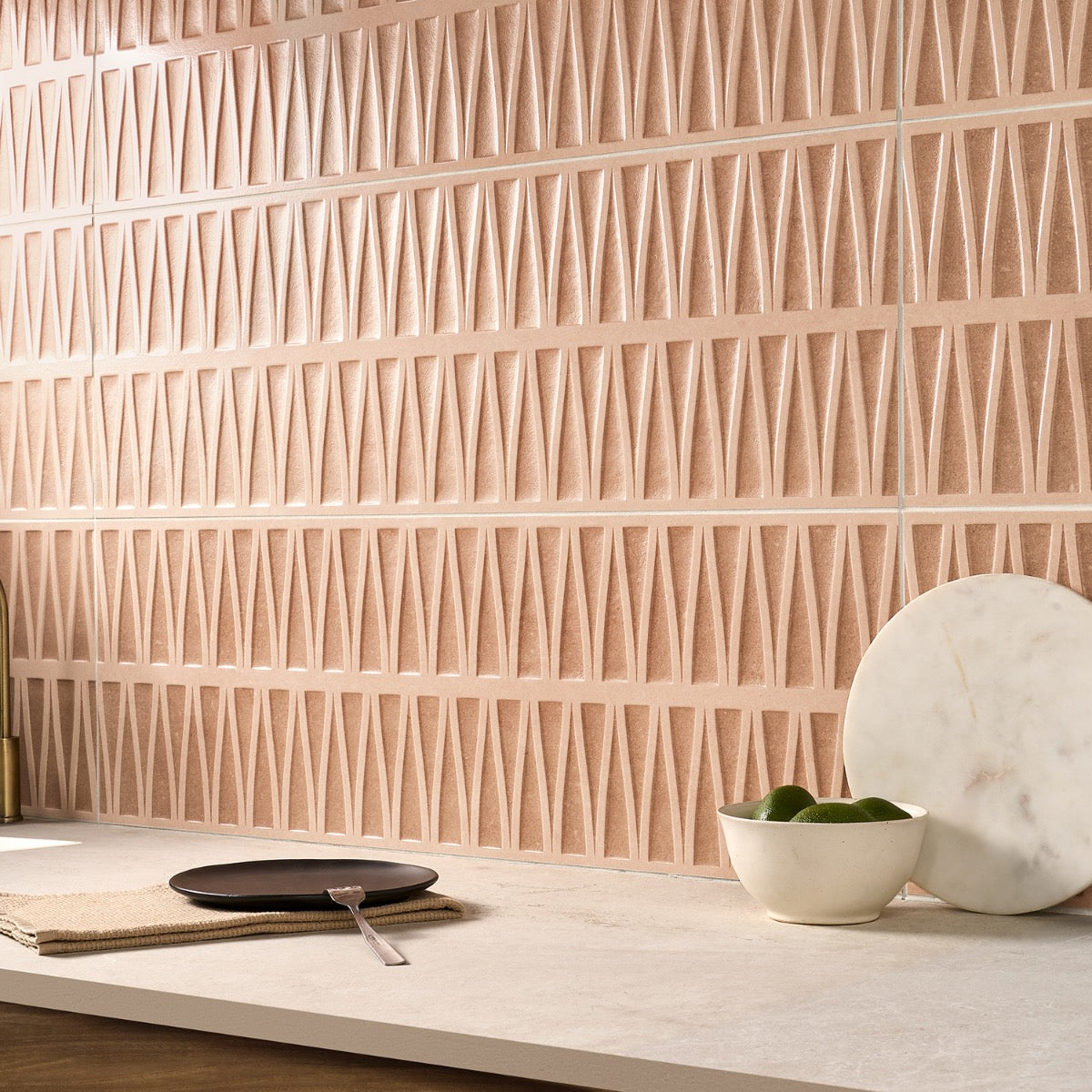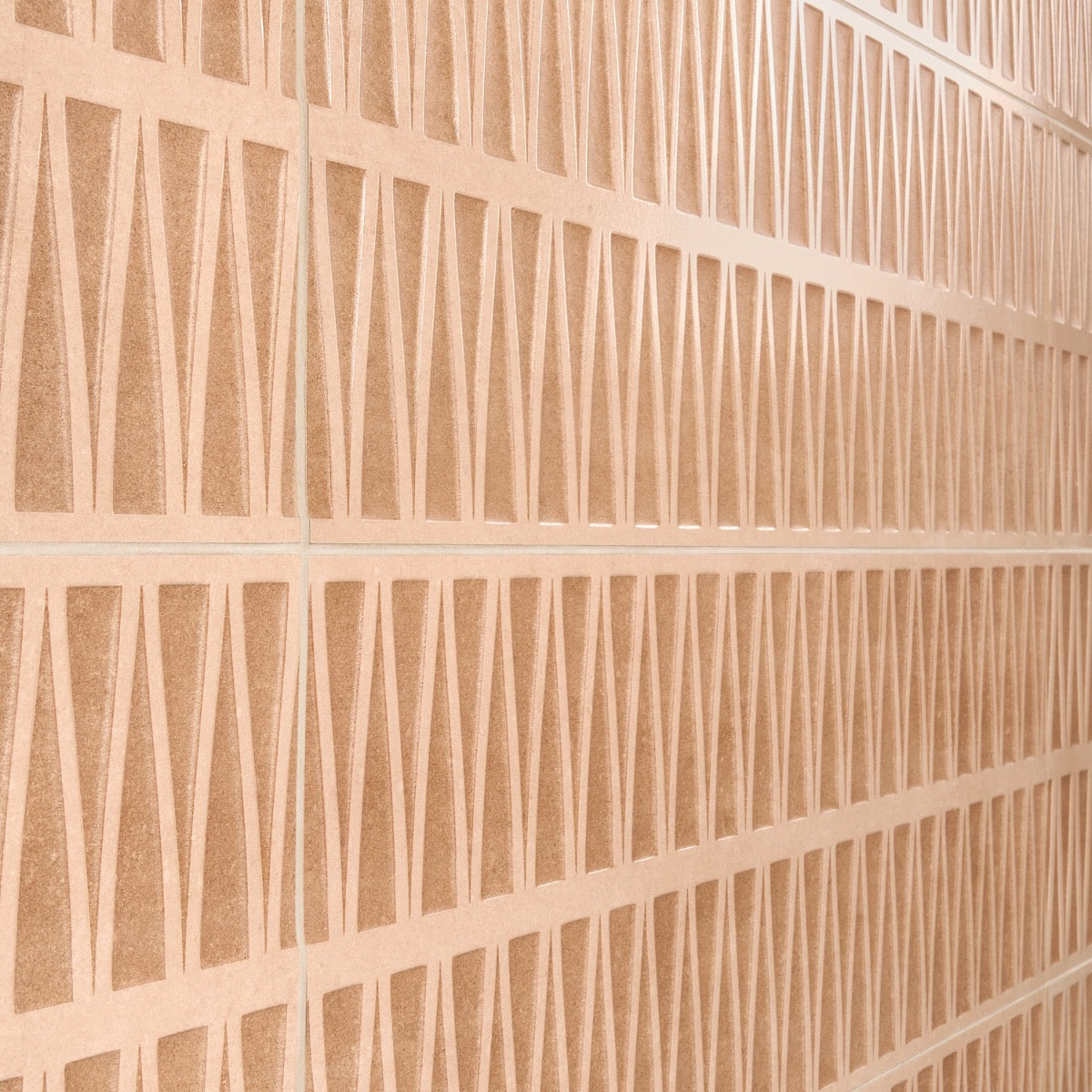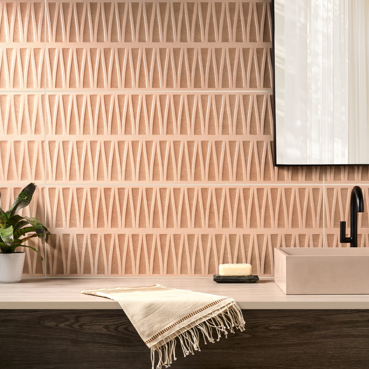 The Terramay Deco Terracotta Tile combines authentic artisanal beauty with contemporary appeal. Featuring a 3D triangle pattern and mixed finishes, this large-format tile is perfect for creating a seamless and inviting atmosphere.