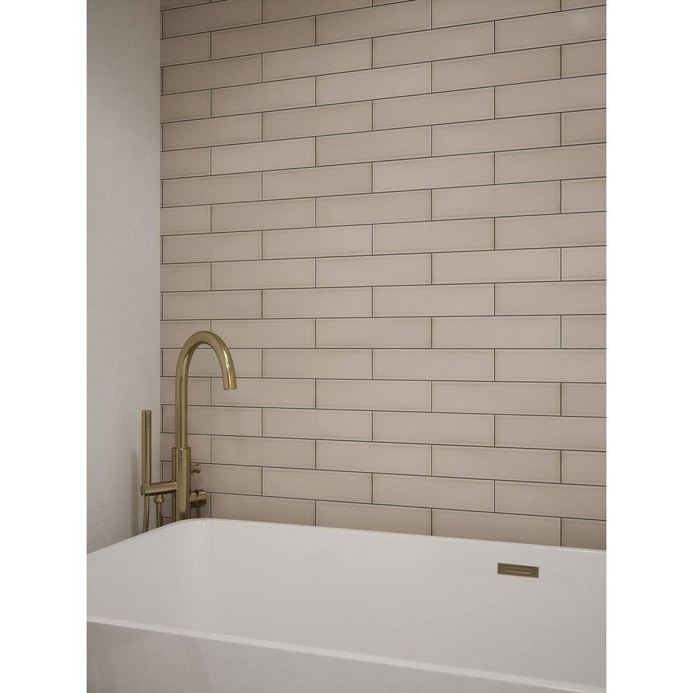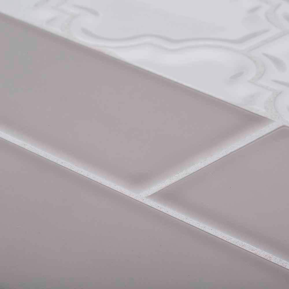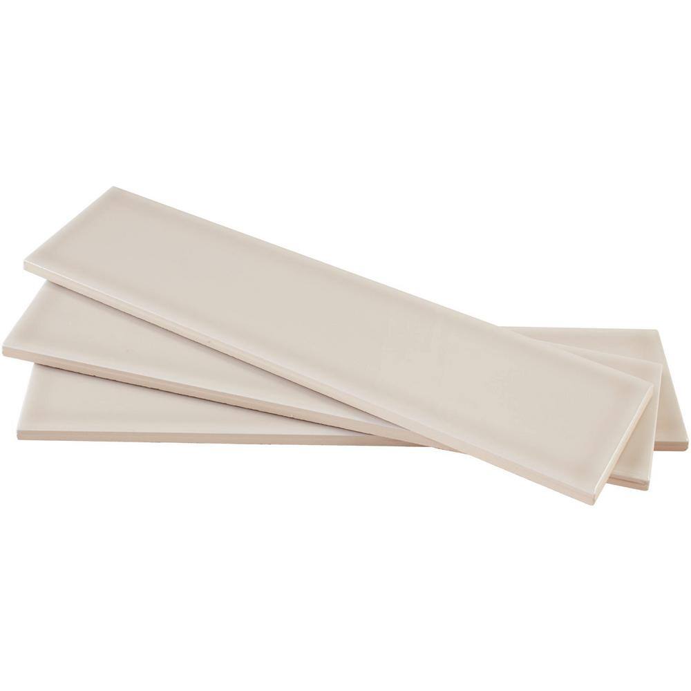 Light gray, glossy ceramic subway tile ideal for backsplashes and bathroom walls. Durable Grade 1 wall tile with uniform shade and easy maintenance. Each case covers 16.5 sq. ft. with 66 pieces of 3 in. x 12 in. tiles.