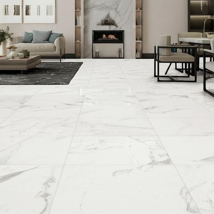 Transform your interiors with the Carrara Polished Porcelain Tile, a masterpiece that combines the timeless beauty of natural stone with the practicality of porcelain. Its polished finish reflects light beautifully, creating a luminous and spacious feel. Pair it with minimalist furniture and metallic accents for a modern, sophisticated look. This tile is not just a surface; it's a statement of refined taste and enduring quality.
