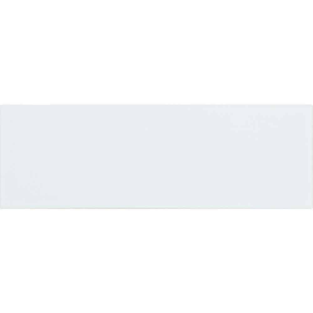 Large-format, glossy ceramic wall tile in true bright white for clean, modern backsplashes and shower walls. Designed for easy maintenance with fewer grout joints and compatible trim from the Restore collection.