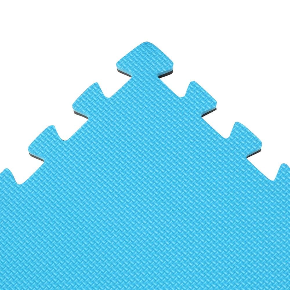 Durable EVA foam tiles deliver cushioned, anti-slip flooring for gyms, garages, and play areas. The reversible blue/black design and puzzle-style edges make installation fast and customizable without tools. Each 24 in. x 24 in. tile is 0.75 in. thick for comfort and impact resistance.