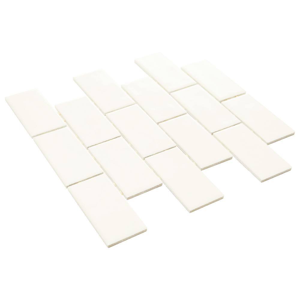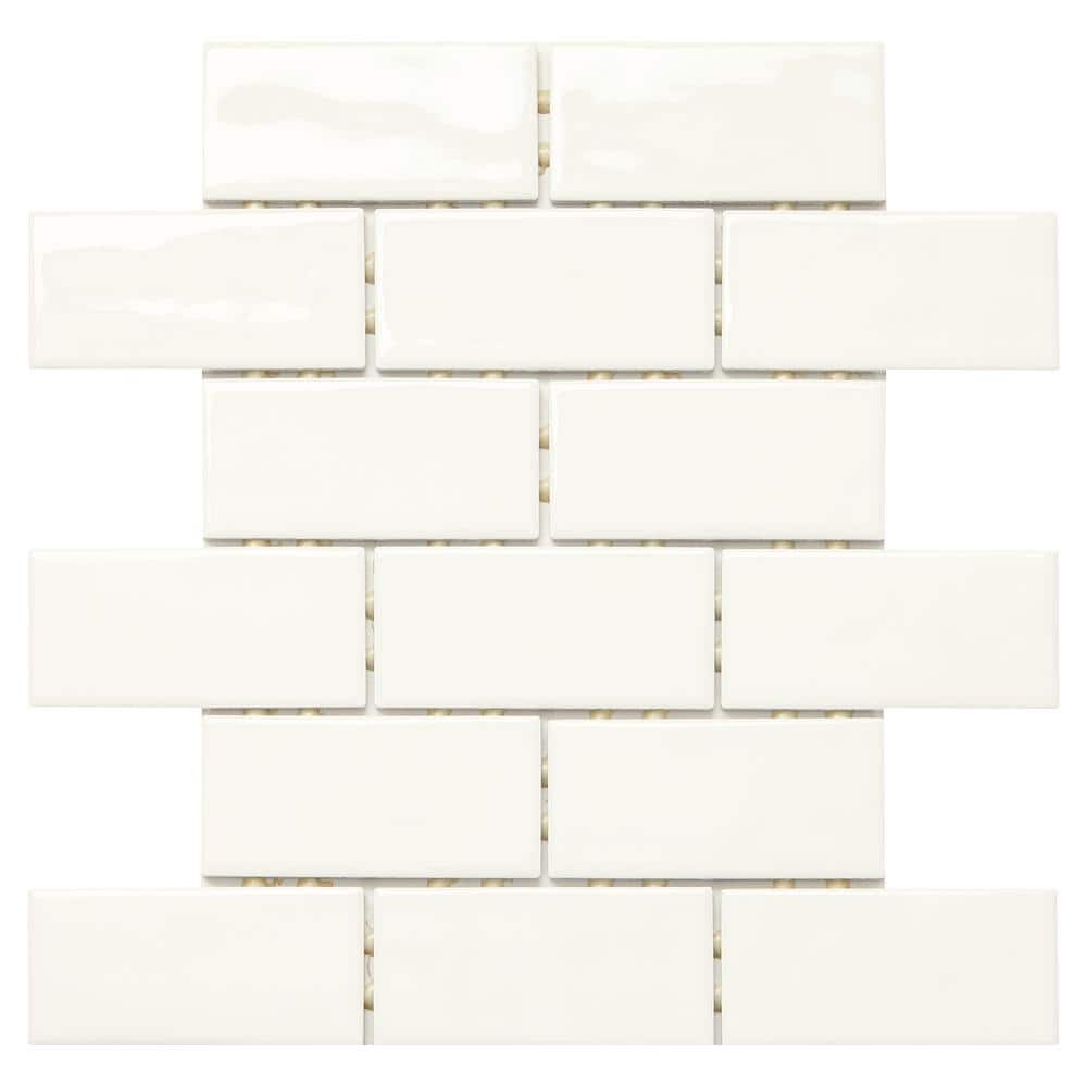 Handmade-look ceramic mosaic in a classic brick-joint pattern for refined walls and backsplashes. Glossy, vitreous 6.35 mm tiles deliver a clean white finish with uniform shade, ideal for kitchens, baths, and feature walls. Sold per 0.83 sq. ft. sheet for easy planning and installation.