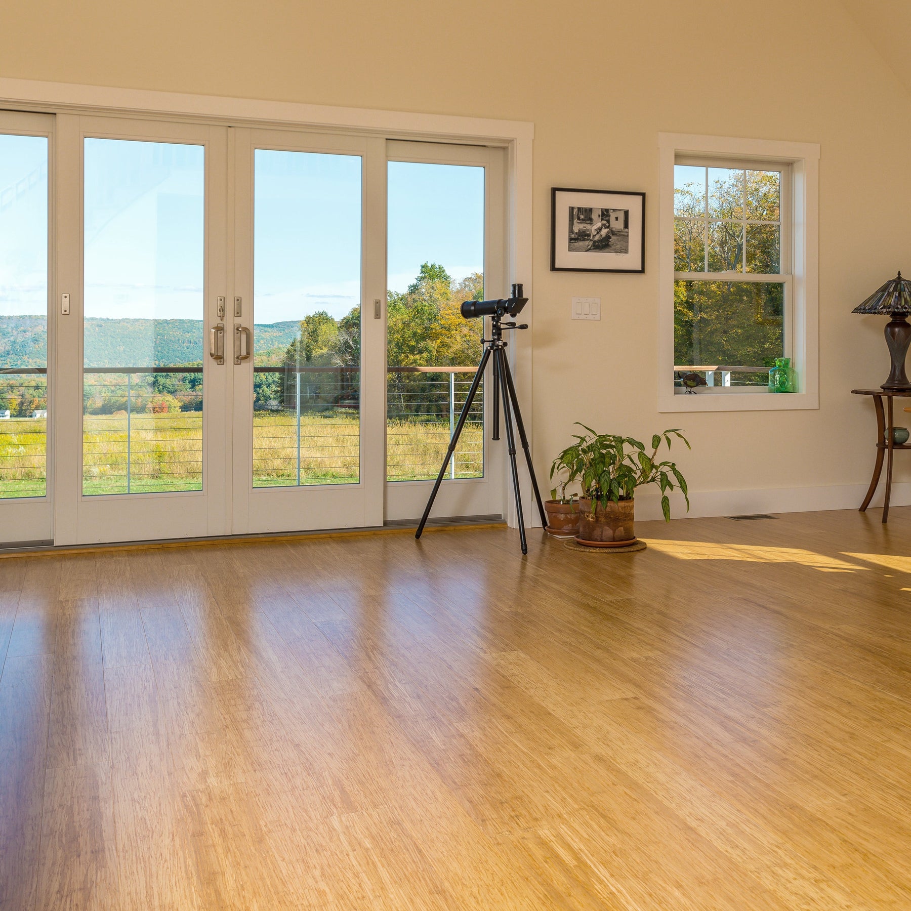 Ultra-dense Fossilized solid bamboo planks deliver a warm natural look with exceptional durability. Prefinished smooth/traditional surface resists scratches and water, ideal for busy homes and light commercial spaces. Tongue-and-groove design supports nail-down or glue-down installation.