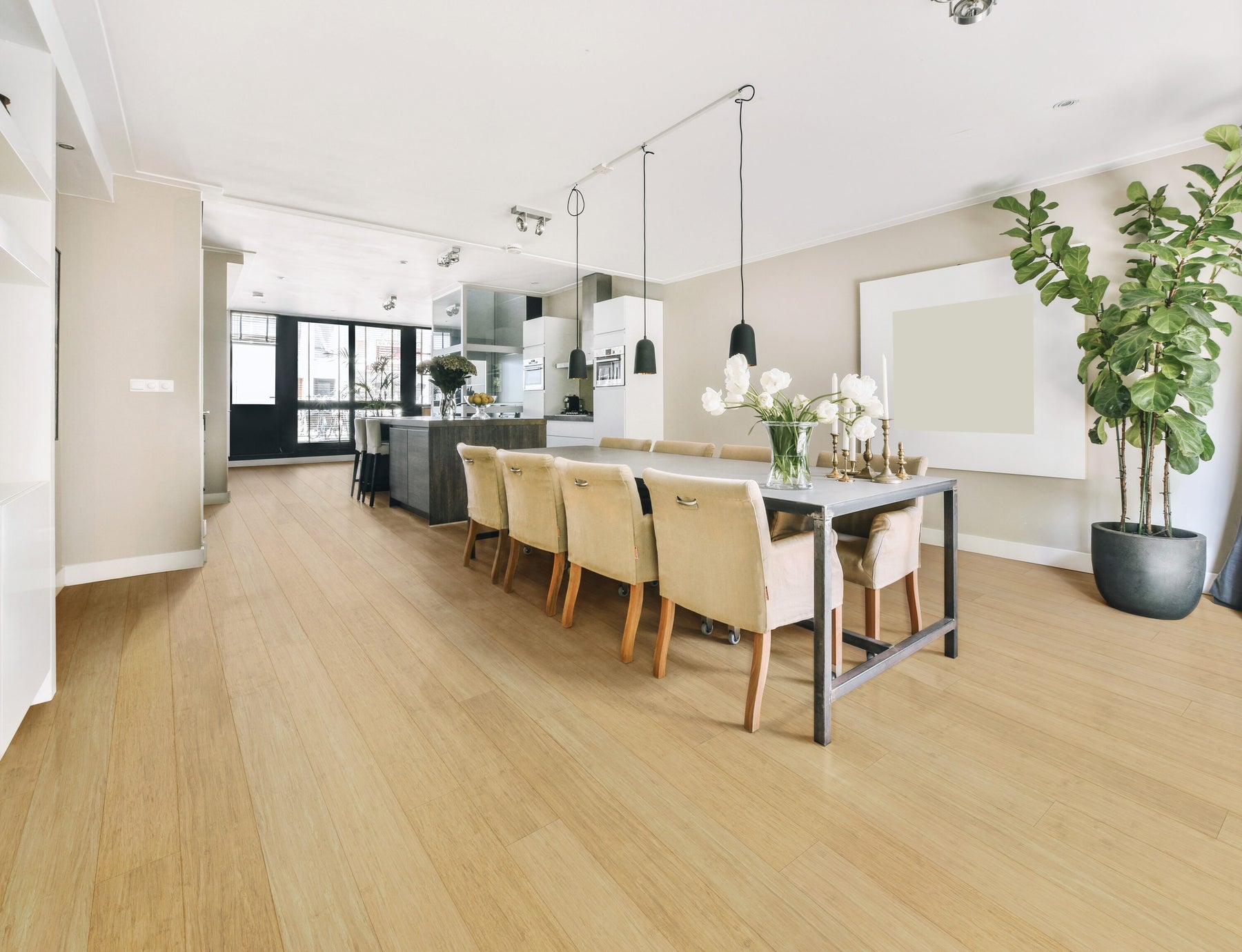 This natural bamboo glows with a honeyed warmth that instantly brightens a room, offering a crisp backdrop for modern or eclectic pieces. The smooth, streamlined surface reads chic and timeless, letting furnishings take center stage. Style it with matte black accents and layered neutrals to amplify its luminous grain. A resilient, eco-forward foundation that feels essential to refined, everyday luxury.