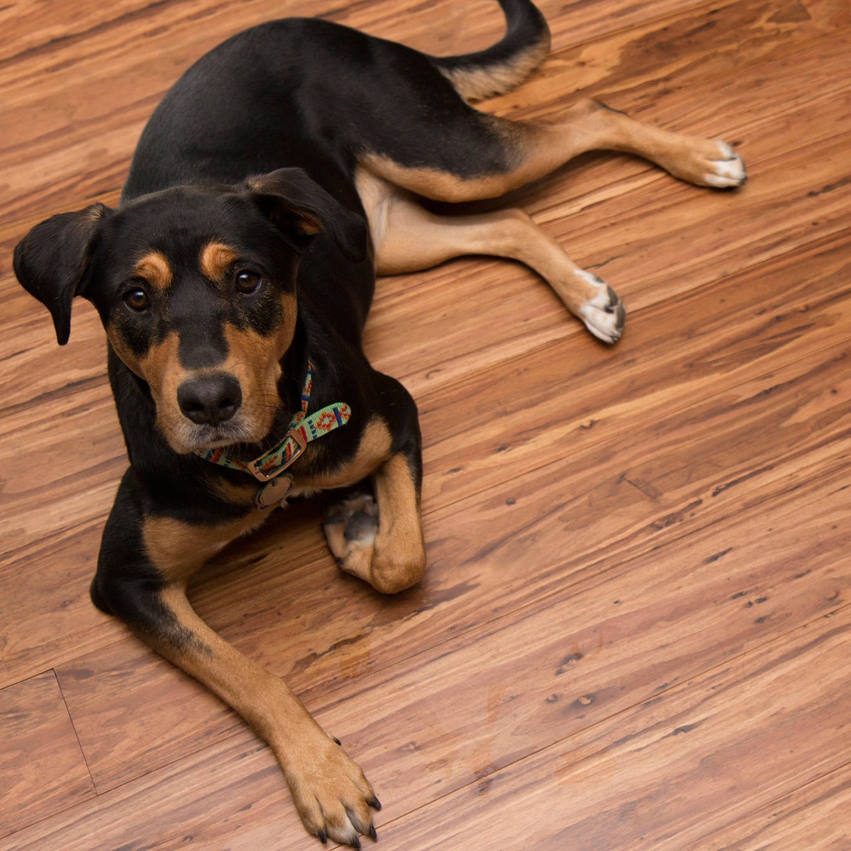A: Yes. The high Janka hardness and multi-coat scratch-resistant finish stand up well to pet traffic.