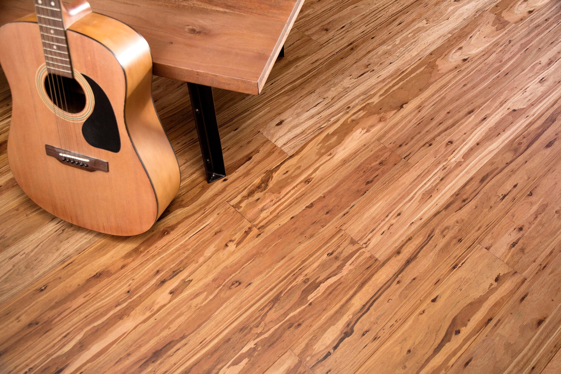 - Sustainable Species: Solid eucalyptus hardwood with bold mocha tones and swirling grain