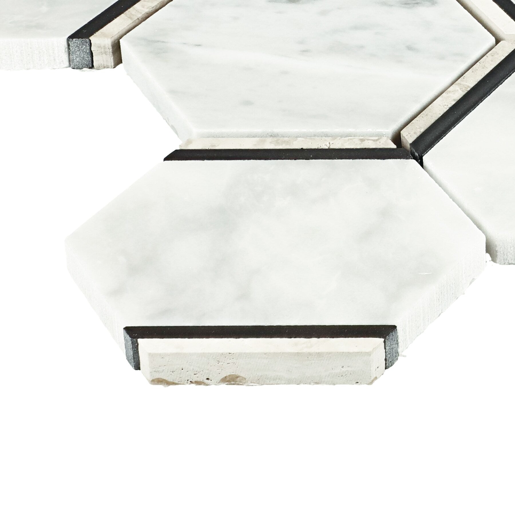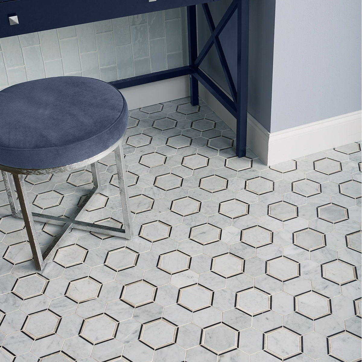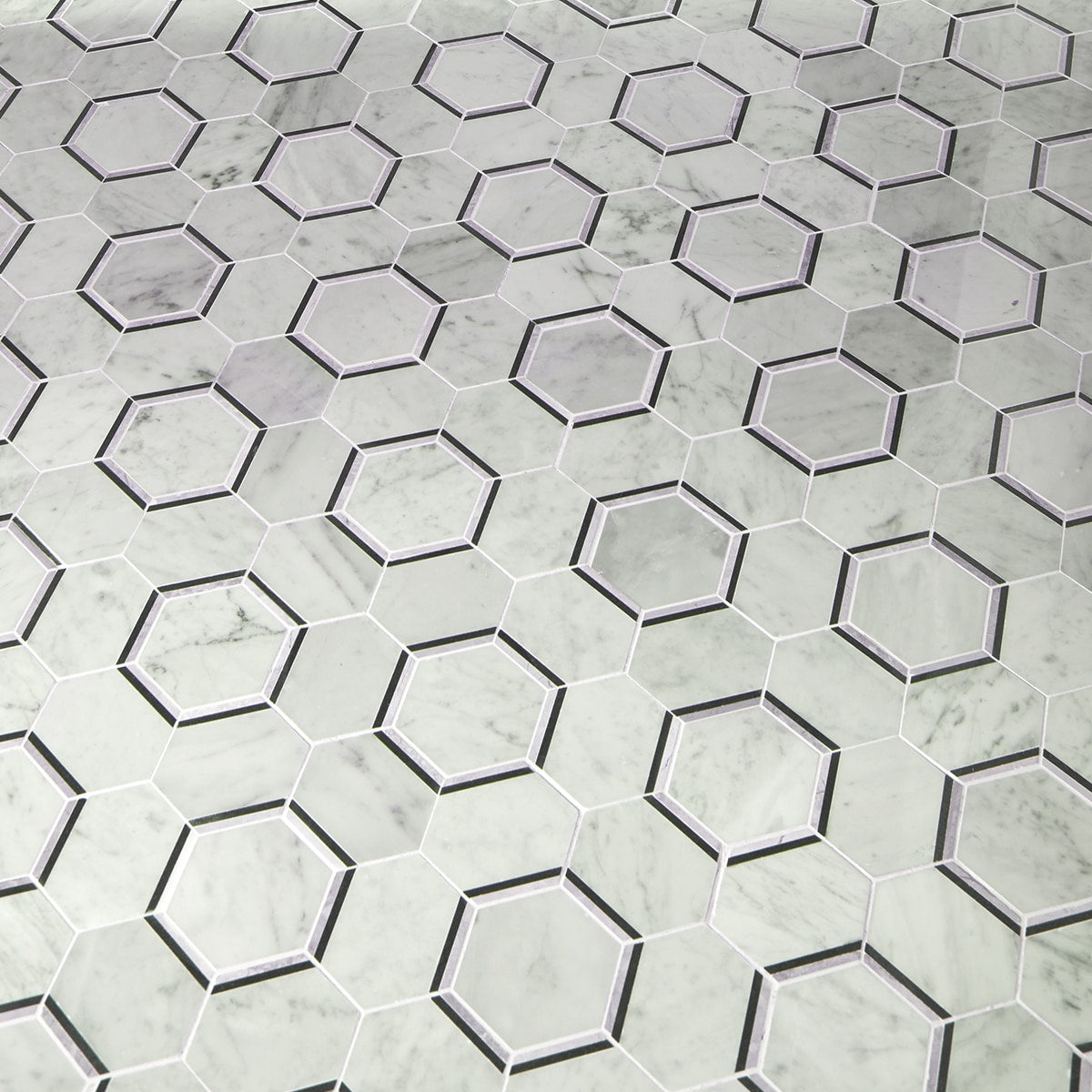 Refresh your space with polished Carrara elegance—add this honeycomb mosaic to your cart and start your upgrade today.