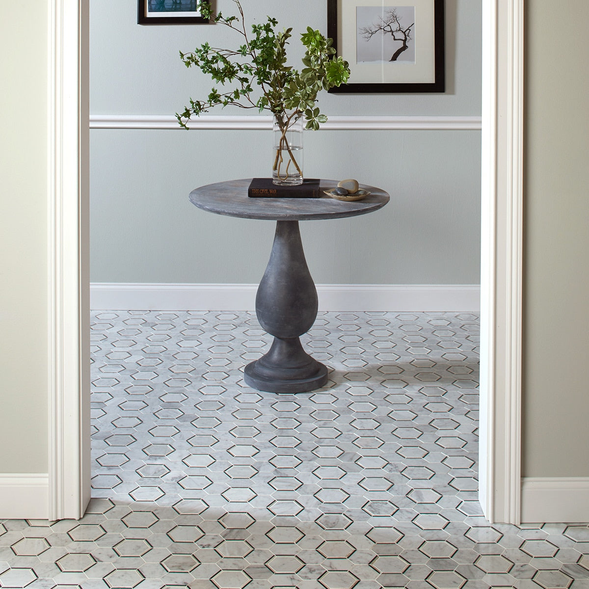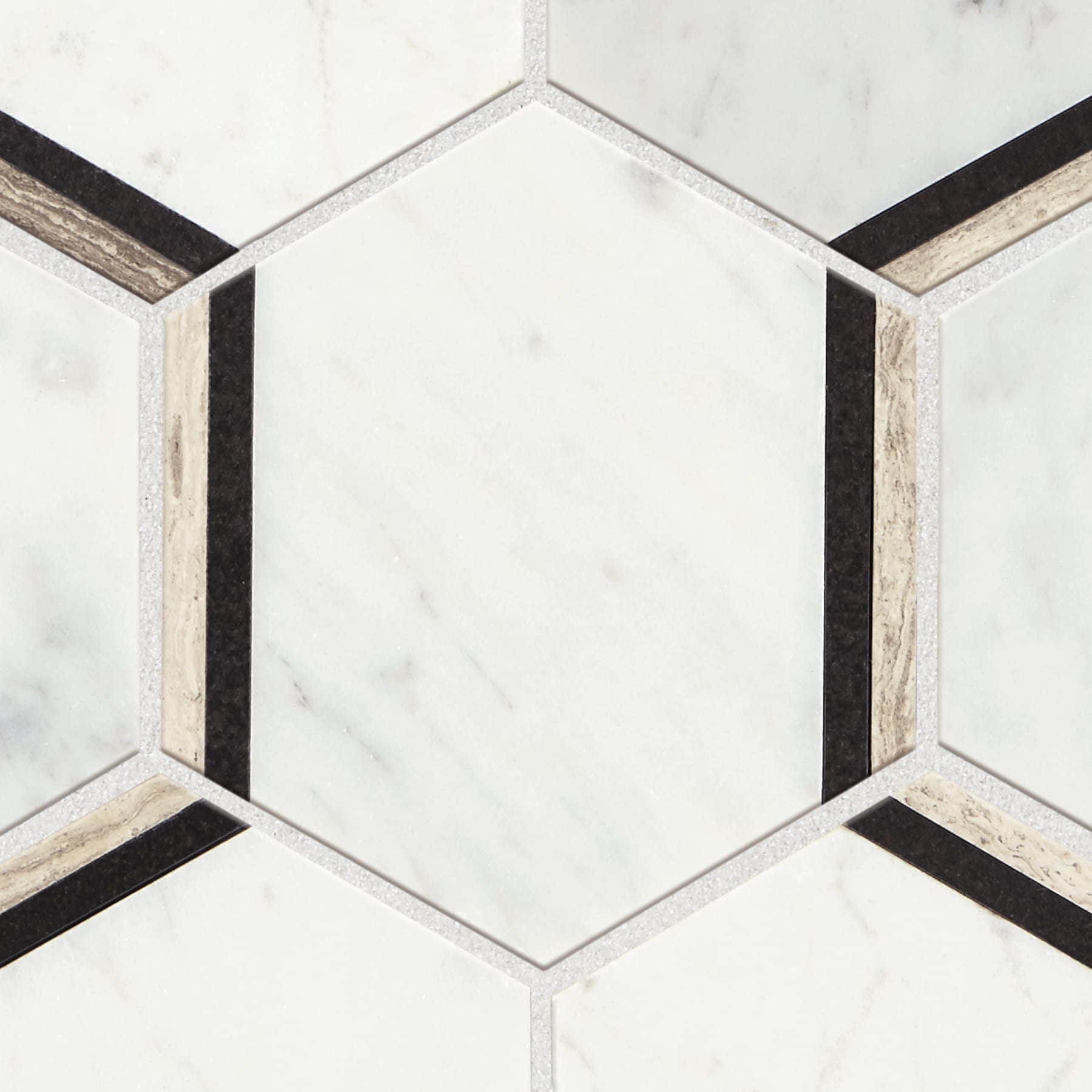 Bring luxe, natural marble to floors and walls with American Olean’s Genuine Stone Carrara honeycomb mosaic. The polished hexagon pattern delivers modern visual interest while the durable stone construction suits indoor bathrooms, kitchens, and showers. Each 12-in x 15-in sheet covers 1.04 sq ft for easy installation and coordination.