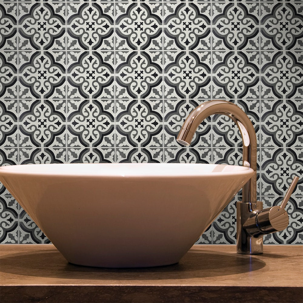 The Lolita Deco Squares infuse any room with a romantic, encaustic-inspired rhythm that feels collected and chic. I love the layered grays and crisp black tracery—ornate yet wonderfully restrained in a soft matte finish. Run it wall-to-wall in a laundry or wrap a vanity wall for a boutique-hotel moment; pair with warm woods and brushed brass for balance. It’s a quietly luxurious foundation that elevates everyday rituals.