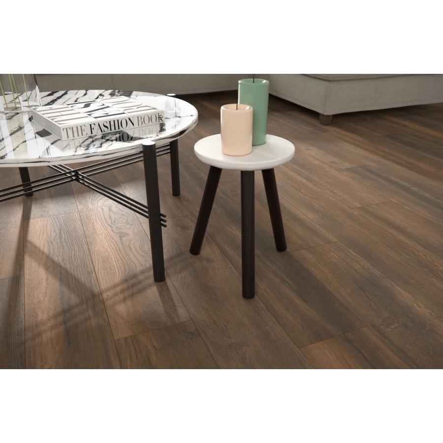 An embossed finish for unmatched realism and texture while the four-sided beveled edges add individual plank definition This richly colored oak has a beautiful reclaimed look that complements an urban/industrial or contemporary room 30-year Limited Residential Warranty with AC-3 rating provides tough scratch and scuff resistance 8mm thickness Easy to install locking system requires no glue and makes installing a laminate floor an easy DIY project; coordinated mouldings available Underlayment is required and we recommend Pergo Gold for easier installation and industry leading sound, thermal, and moisture protection FloorScore® Certified and CARB Phase 2 Compliant Manufactured in the U.S.A. with materials from the U.S.A and Europe